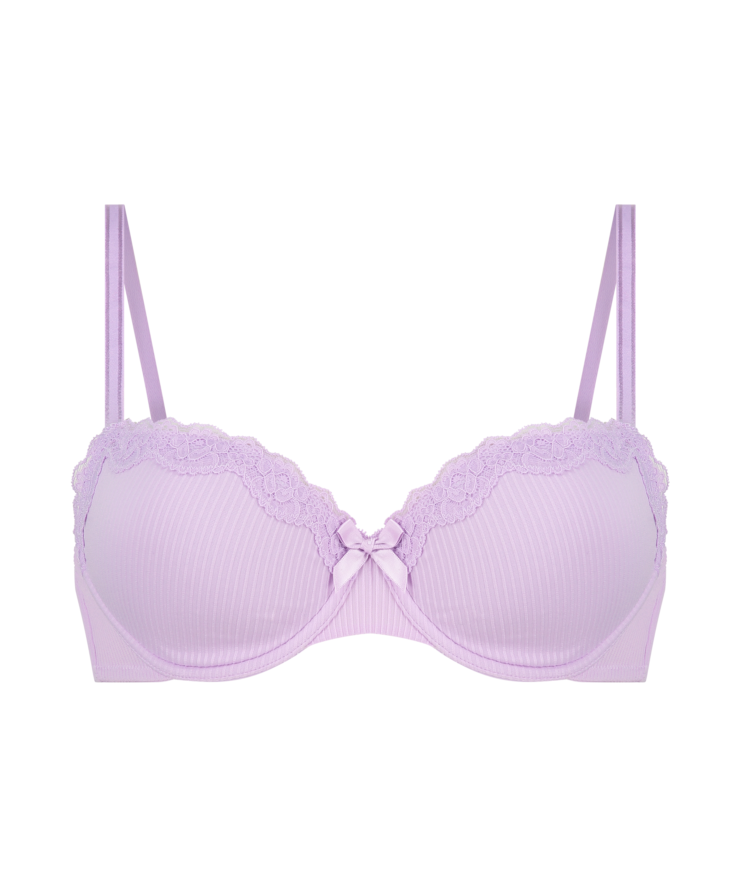 Este sujetador con aros acolchado está acabado con detalles de encaje en la parte superior de las copas. También tiene un pequeño lazo entre las copas, lo que le da un look supersexi. ¡Combínalo con los artículos a juego!
