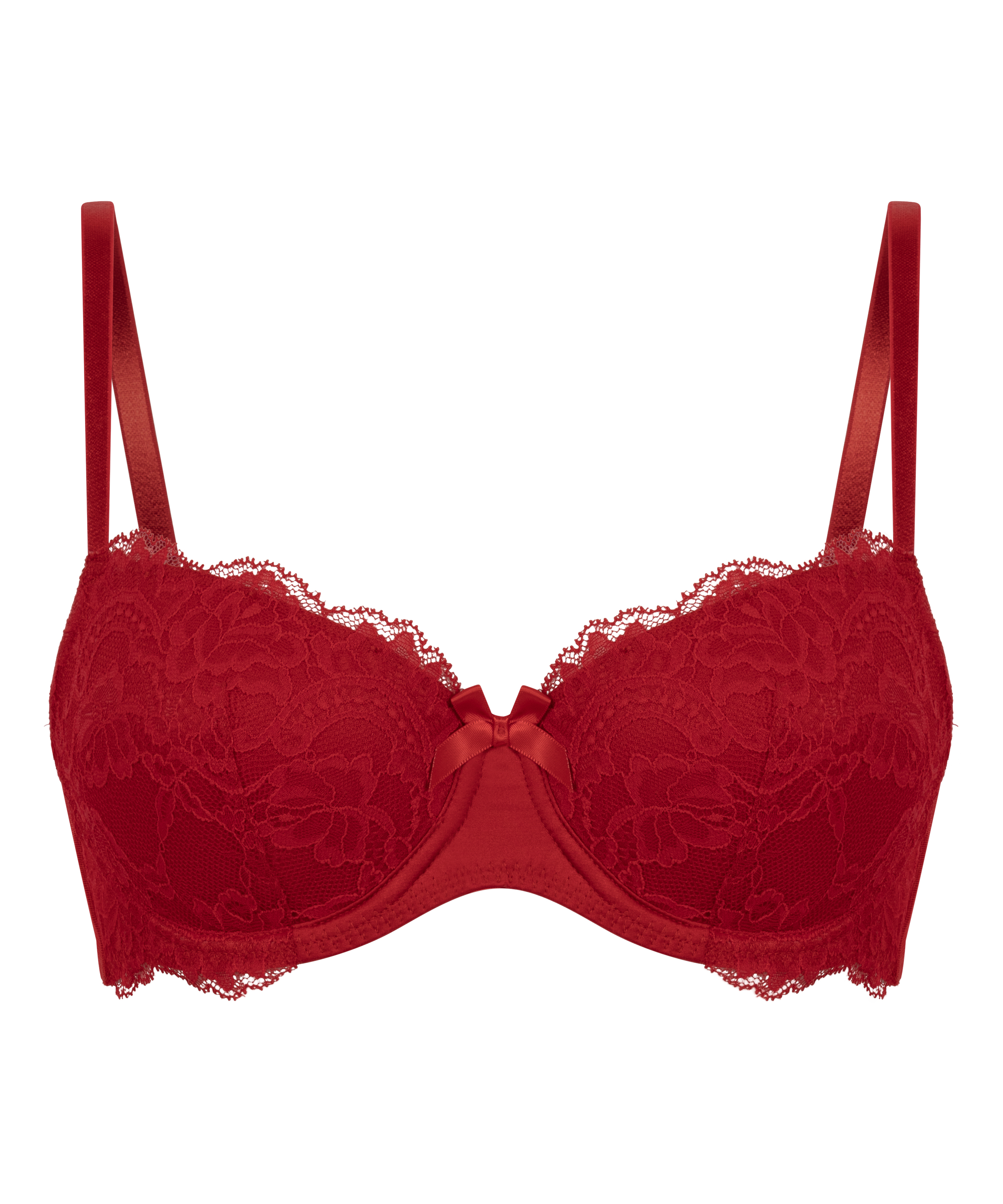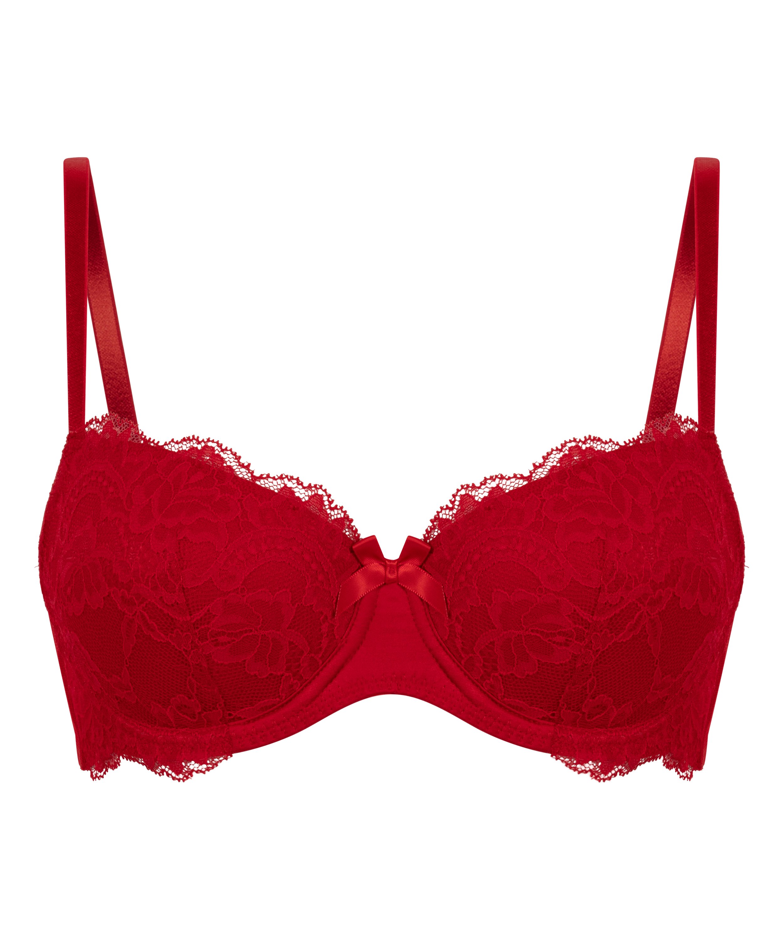 ¡Este es el sujetador perfecto para ti! El sujetador con aros preformado tiene tirantes ajustables. El sujetador está acabado en encaje y tiene un lacito entre ambas copas.