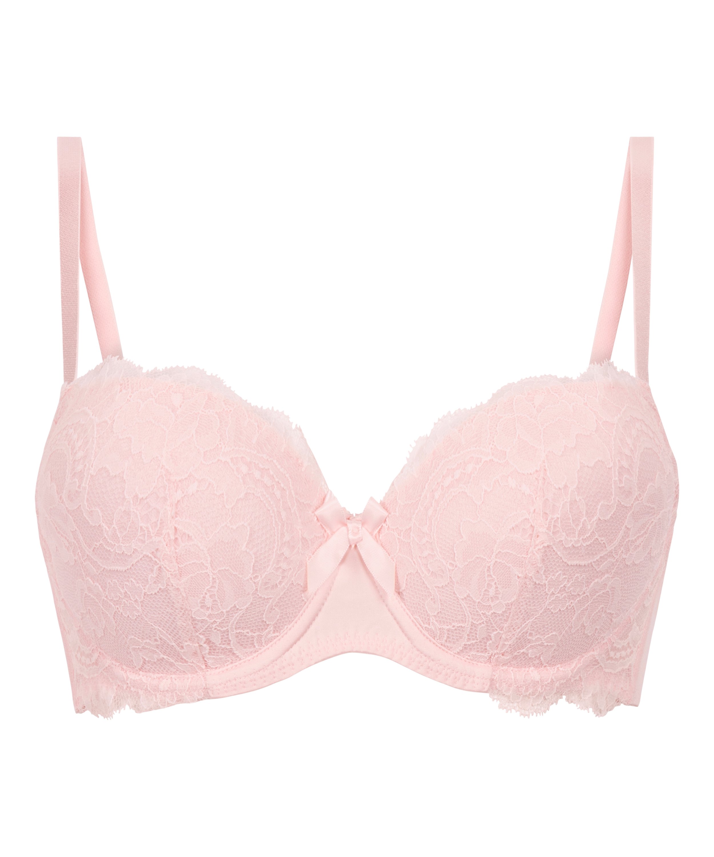 ¡Este es el sujetador perfecto para ti! El sujetador con aros preformado tiene tirantes ajustables. El sujetador está acabado en encaje y tiene un lacito entre ambas copas.