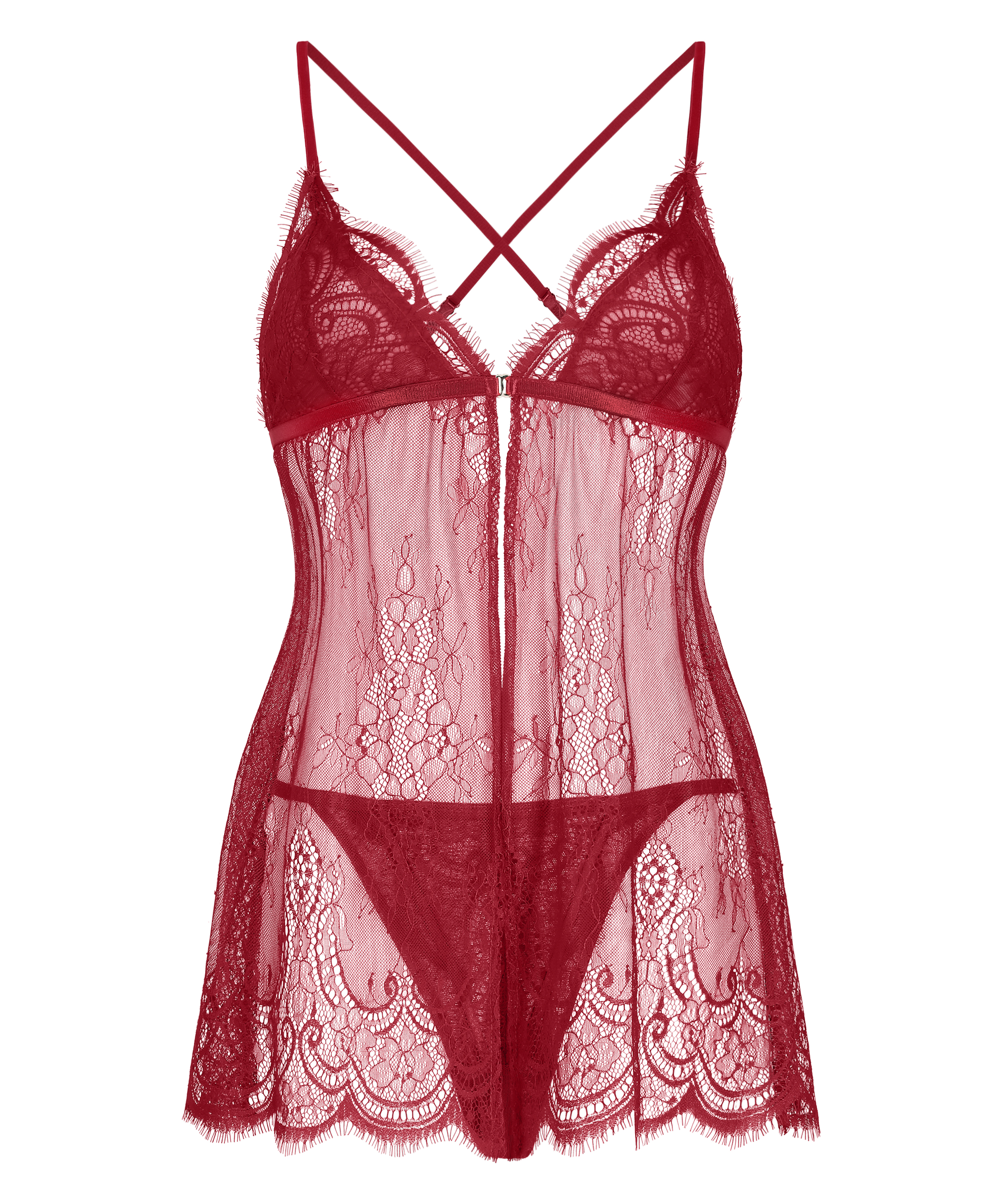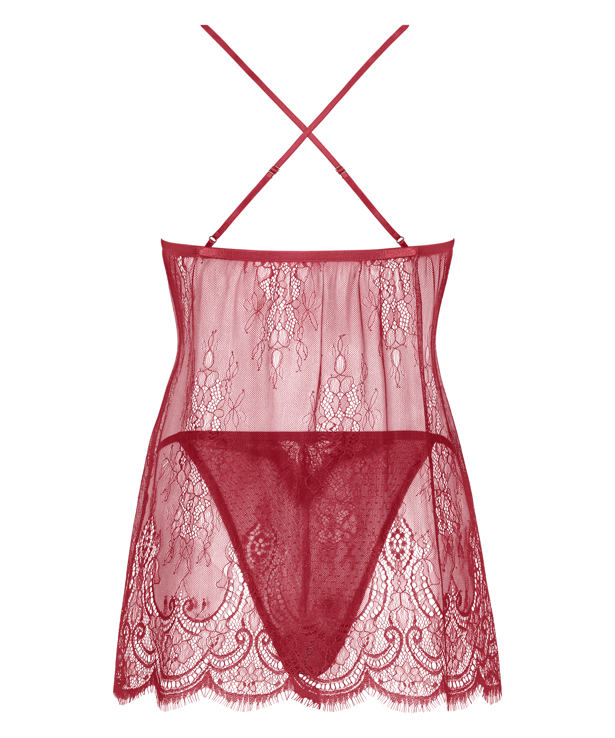 Siéntete cómodamente sexy con este picardías sin aros. Decorado con delicados detalles de encaje en las copas y tirantes finos regulables, proporciona comodidad y estilo. El picardías viene con braguitas a juego, confeccionadas en una mezcla de encaje y rejilla, para lograr un conjunto a juego que desborda sensualidad.