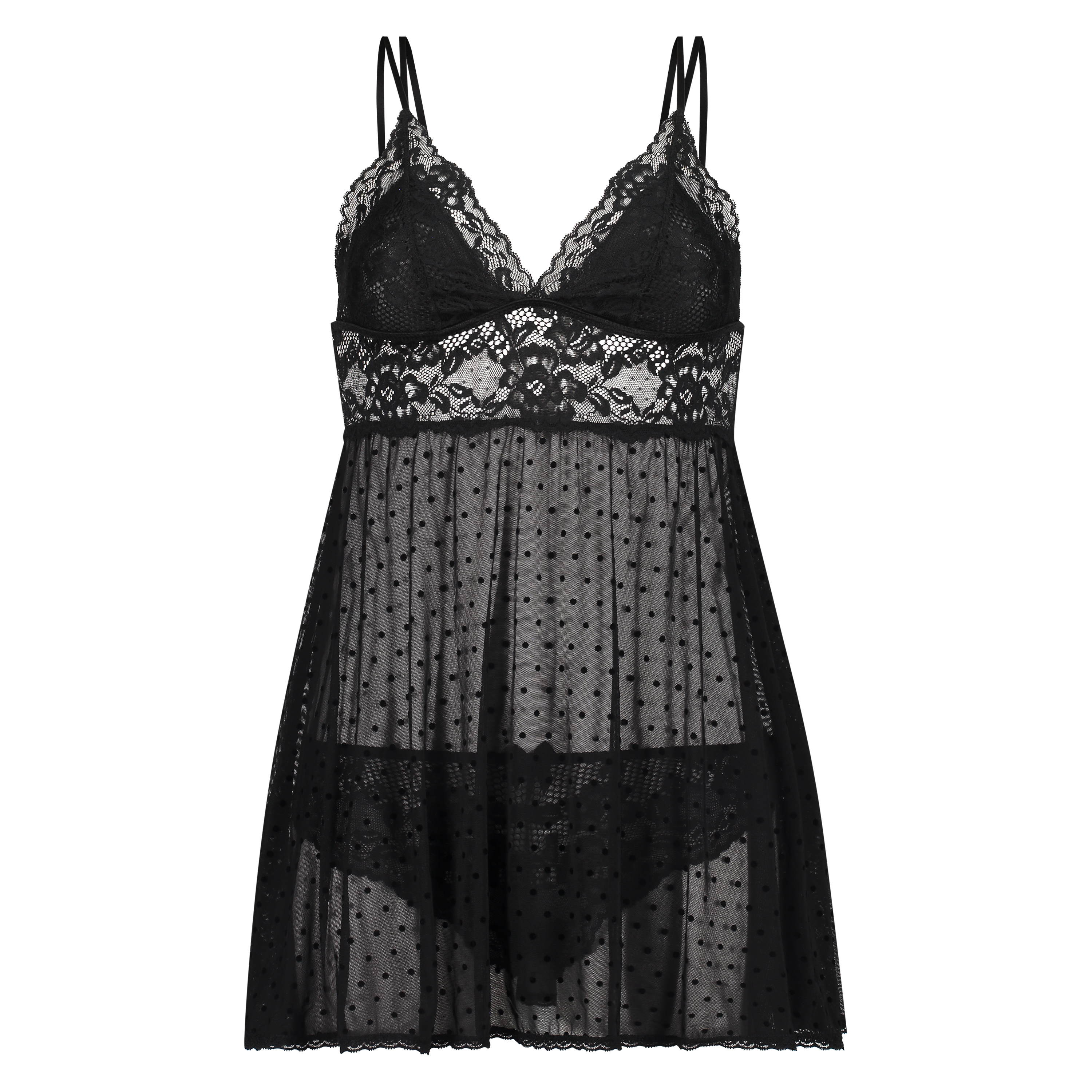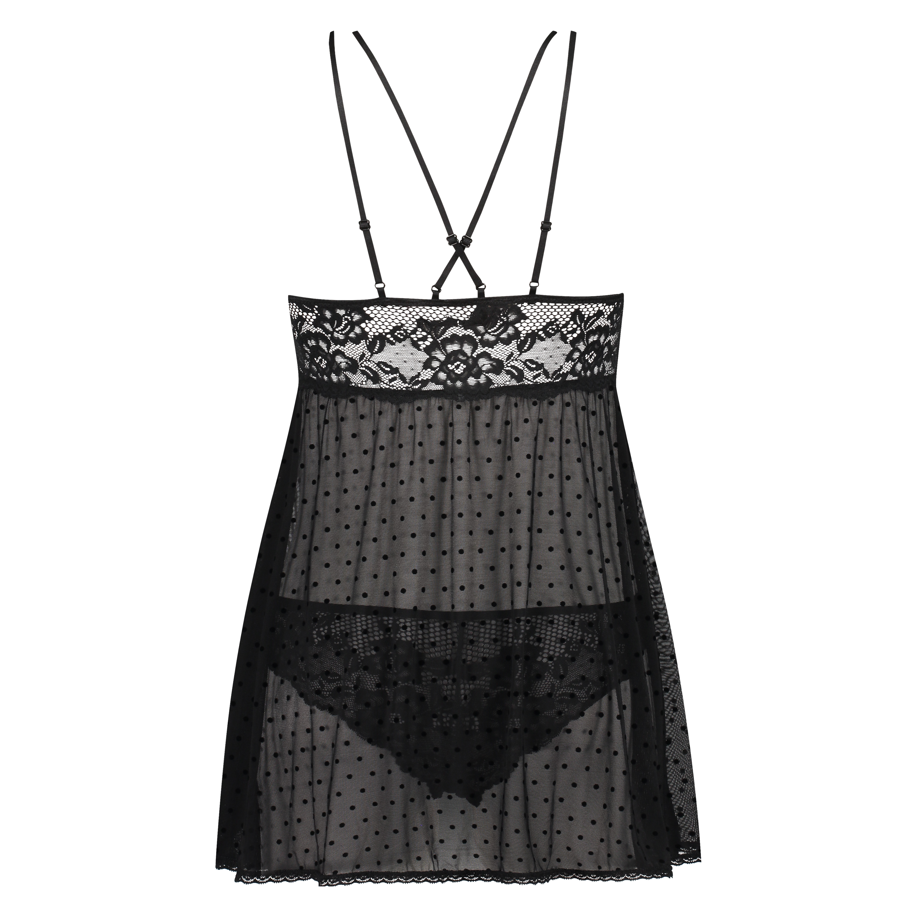 ¡Siéntete supersexy en este non-wired picardías! Este picardías tiene detalles de encaje y rejilla, tirantes ajustables y un bonito acabado con un patrón de puntos. La braguita a juego está hecha de una mezcla de encaje y rejilla.
