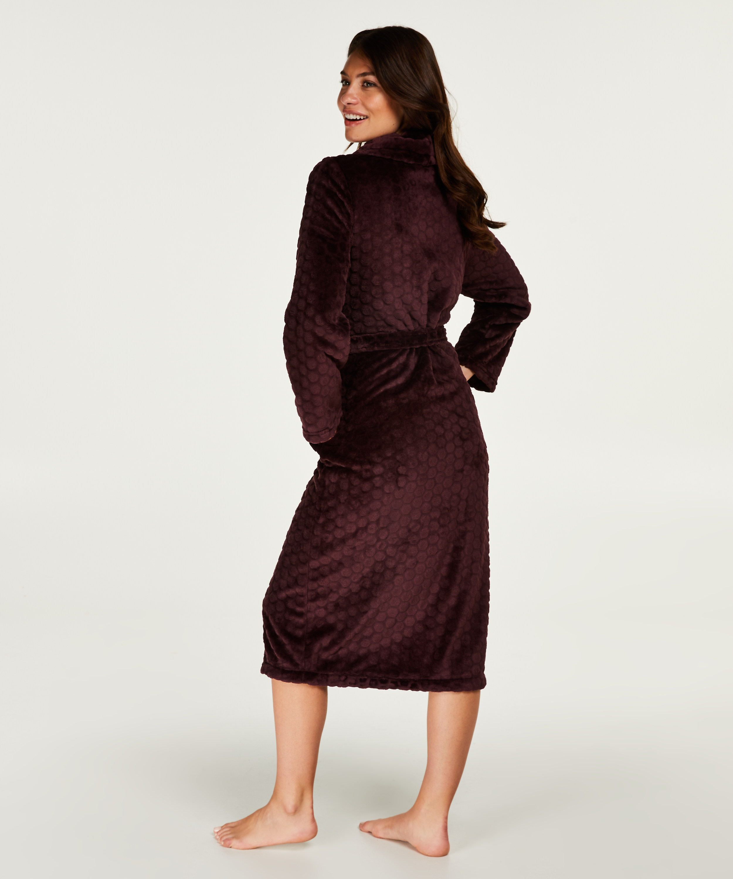 ¡Una bata muy suave! Esta bata larga llega hasta la rodilla. Tiene un cierre de lazo anudado y bolsillos.