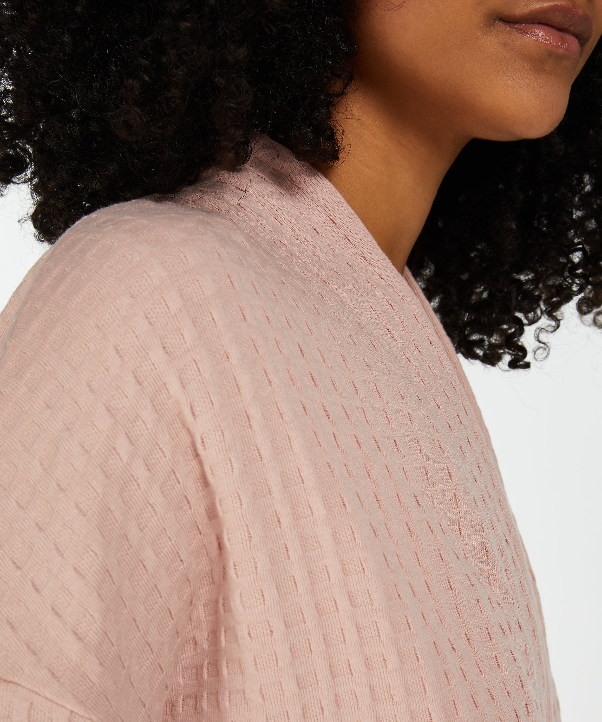 ¡Esta bata es bien cómoda! Está hecha de un tejido de piqué. La bata tiene un cierre de cordón adicional en la parte interior, ¡para que se mantenga en su sitio!
