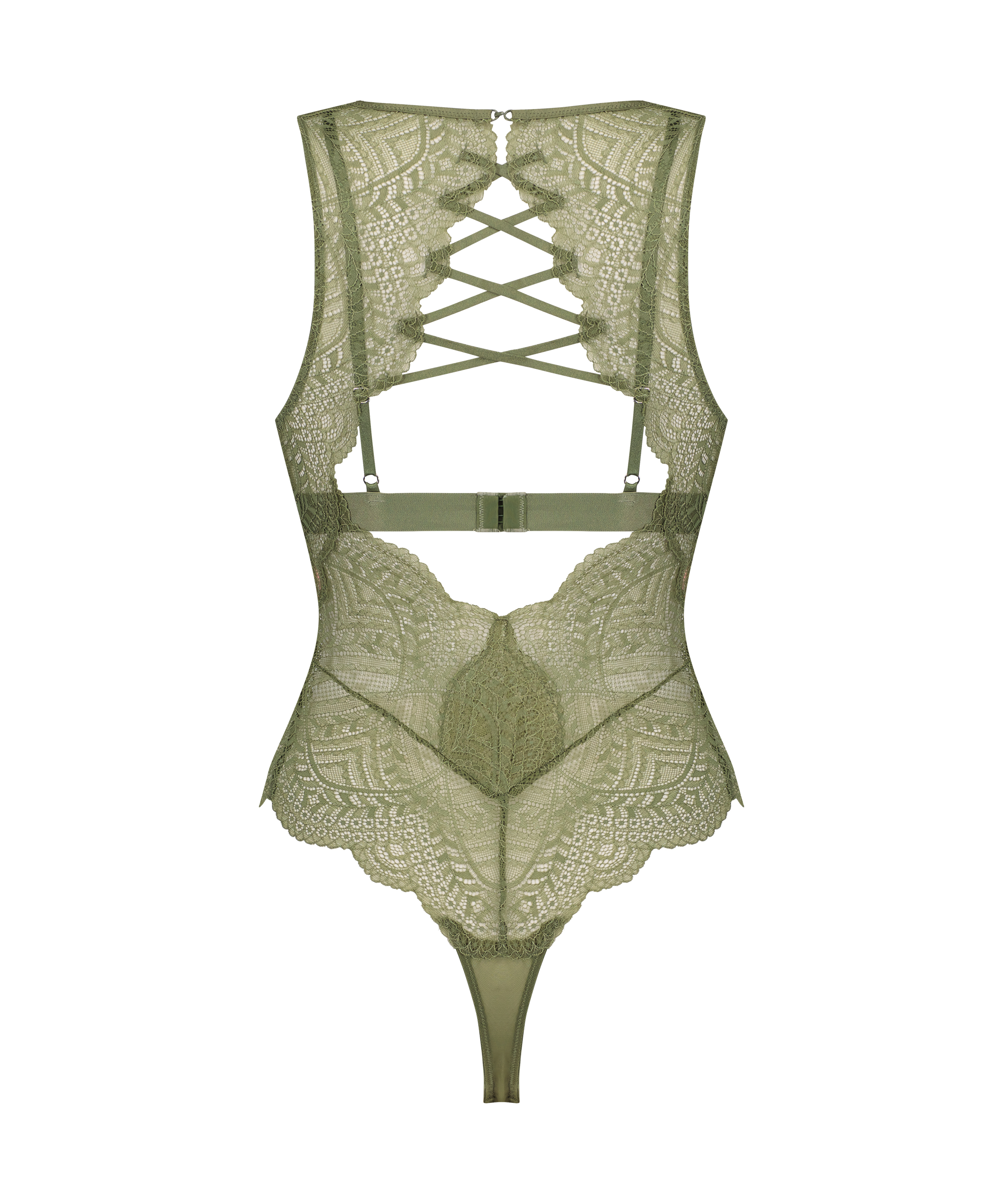 ¿En busca de un bodi sensual? ¡Aquí tienes lo que buscas! Con un diseño semitransparente y mucho encaje. Tiene un diseño de cuello alto, con detalles recortados decorados con tirantes. ¡Tiene que ser tuyo!