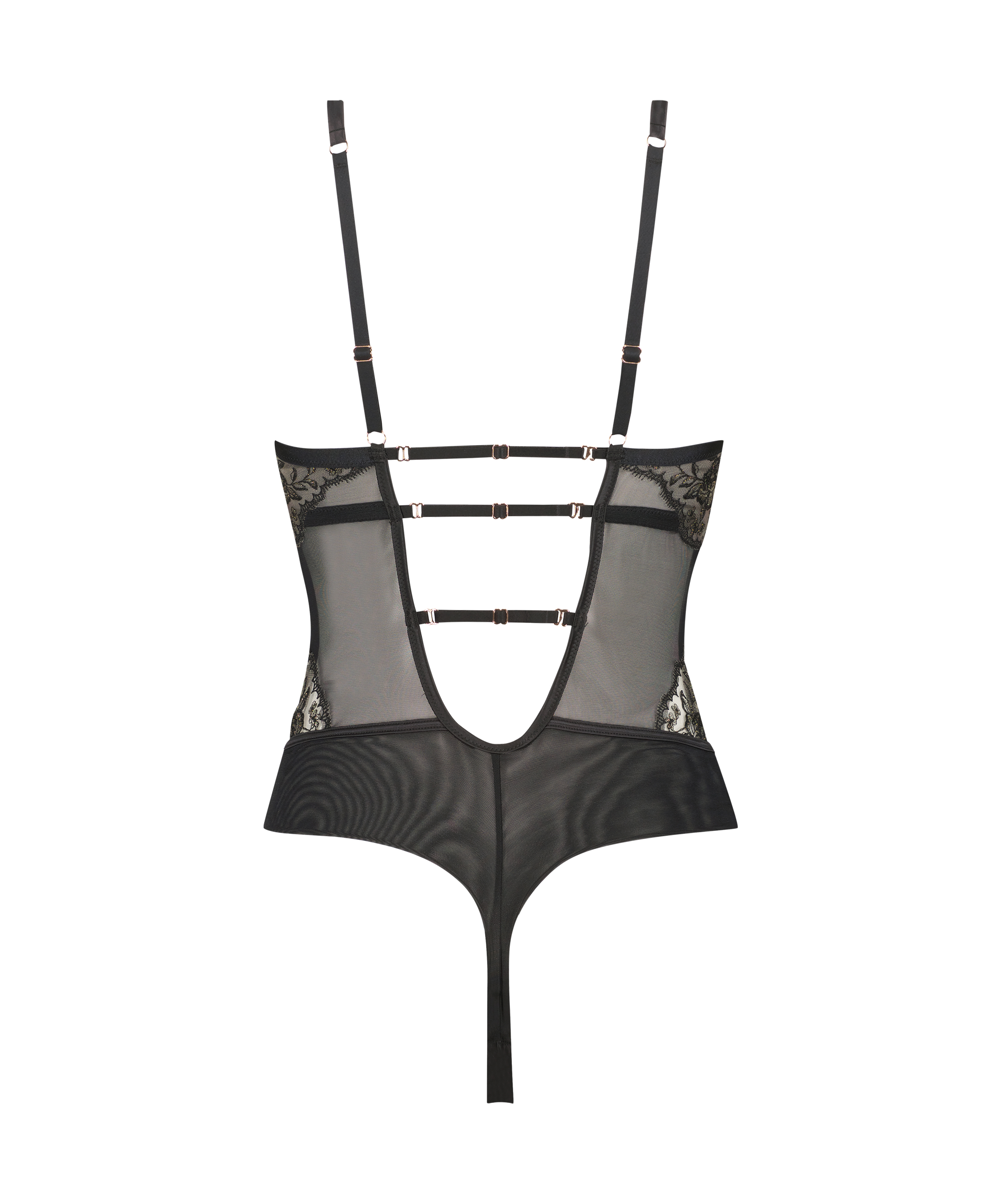 Consigue un aspecto elegante con este bonito bodi. El sujetador sin relleno permite maximizar la comodidad. El bodi está confeccionado con detalles de encaje y transparencias. Echa un vistazo a los artículos de la colección Noir para completar este look.