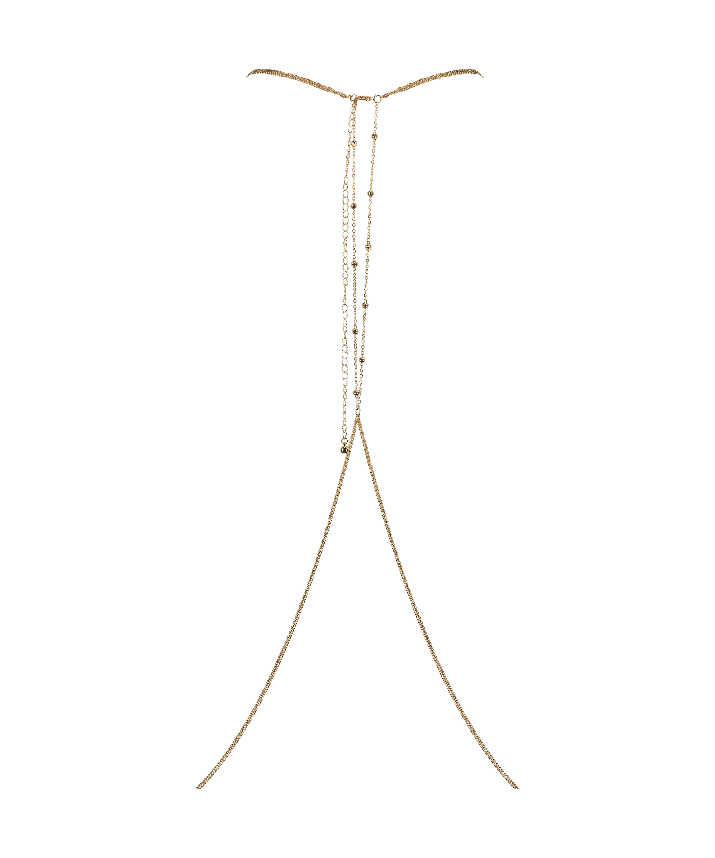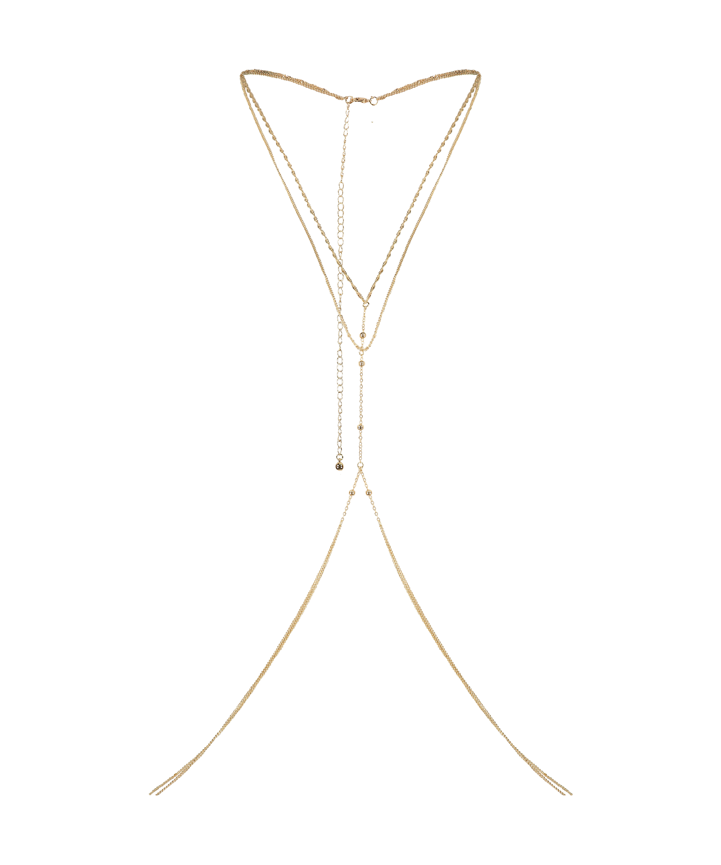 Completa tu look con esta bonito arnés para el cuerpo. ¡Es de color dorado y te dará un toque especial!