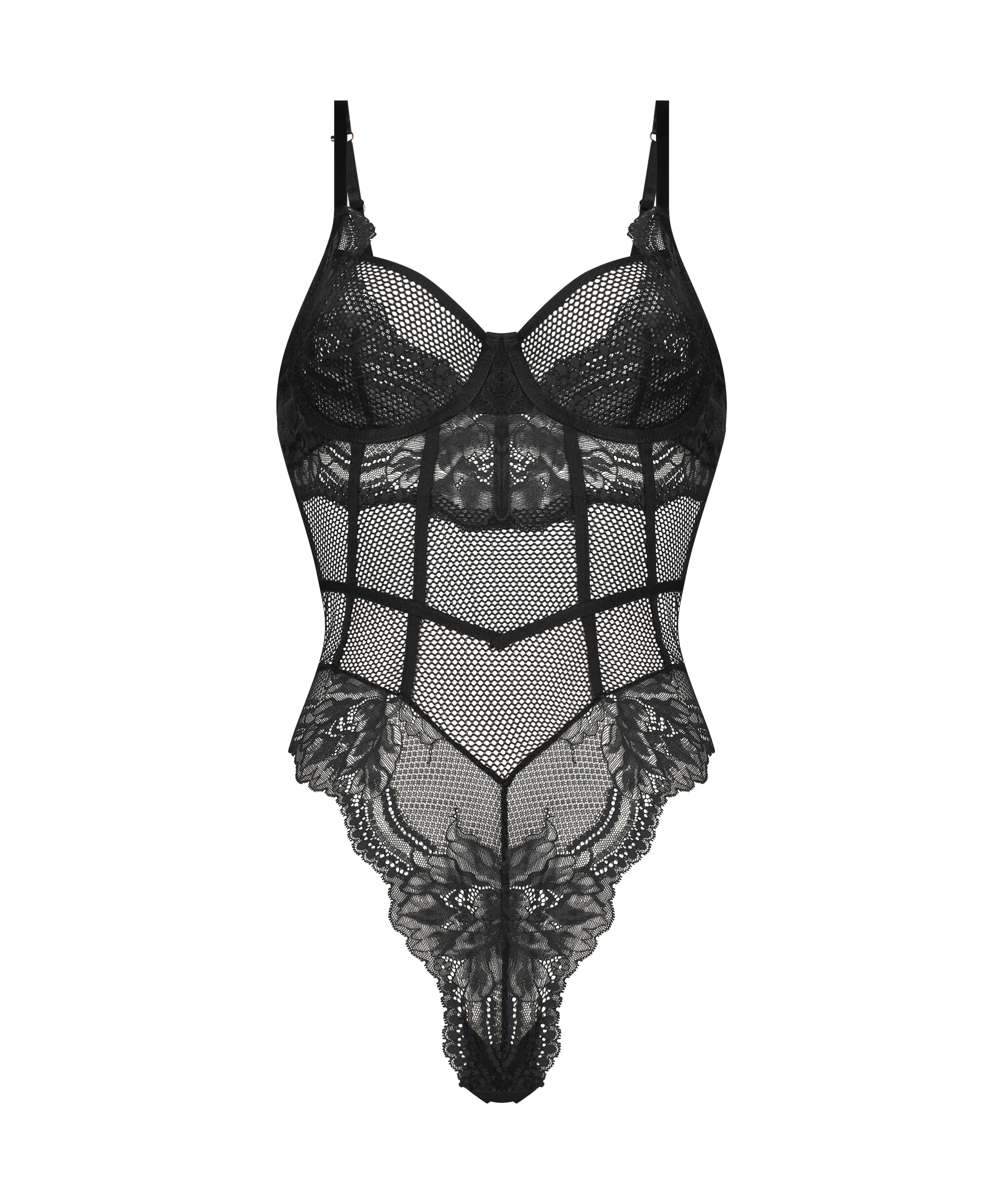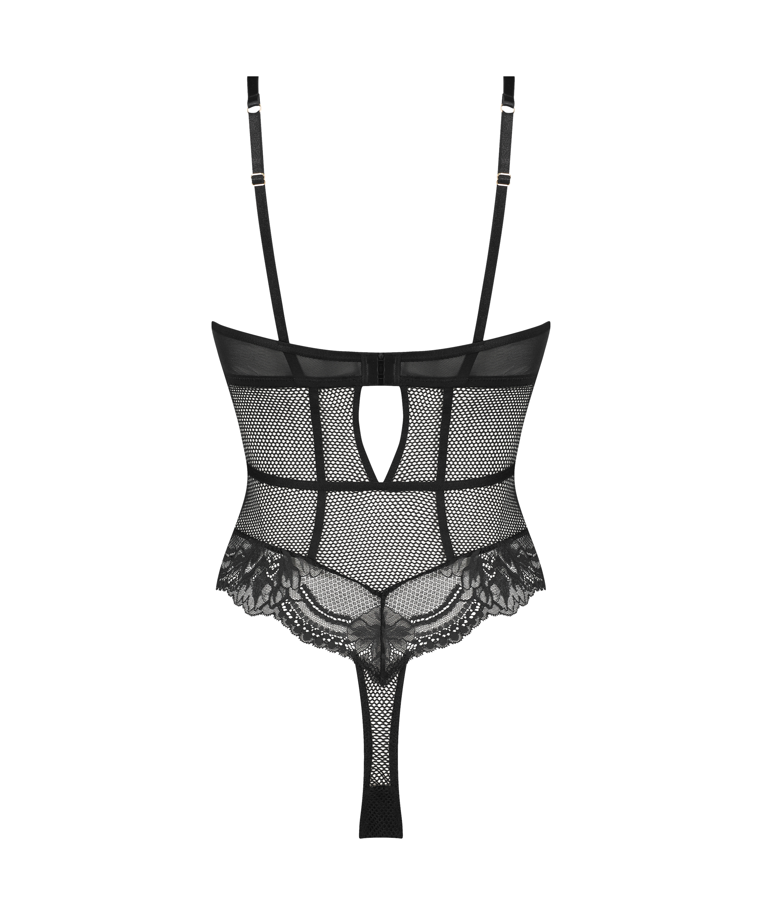 Saca tu lado más sensual con este bodi tan sexi. Cuenta con un acabado semitransparente gracias al material de rejilla. Además, incluye varillas frontales para mayor sujeción y sensuales detalles de encaje. ¡Combínalo con un kimono para lucir un conjunto 10!