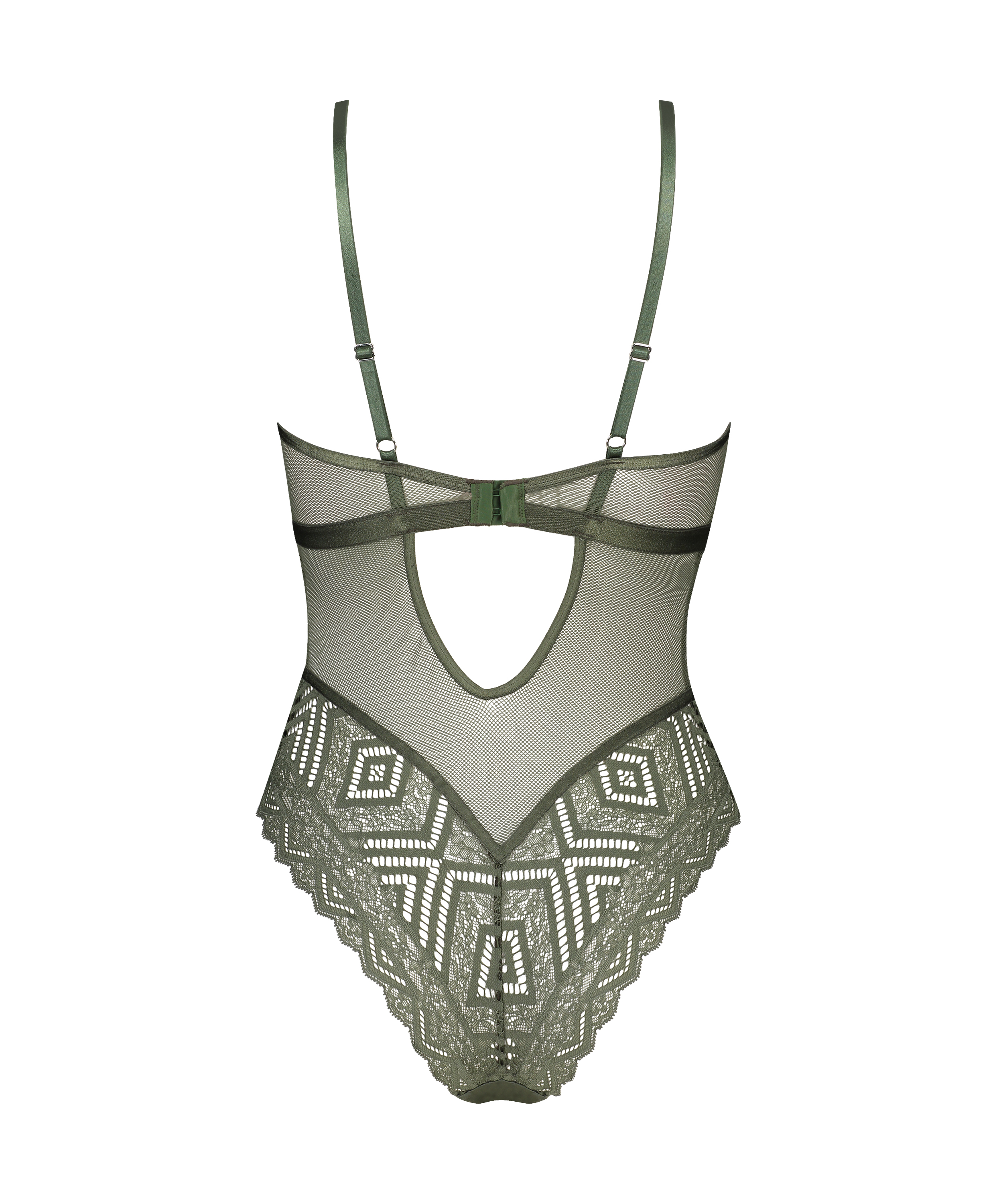 ¡Saca tu lado romántico con este bodi! La mayor parte es de encaje y rejilla. Su pronunciado escote en pico lo convierte en un bodi muy sexi. ¡Combínalo con un kimono a juego de nuestra colección para completar tu conjunto! Forma parte de la colección I AM Danielle.