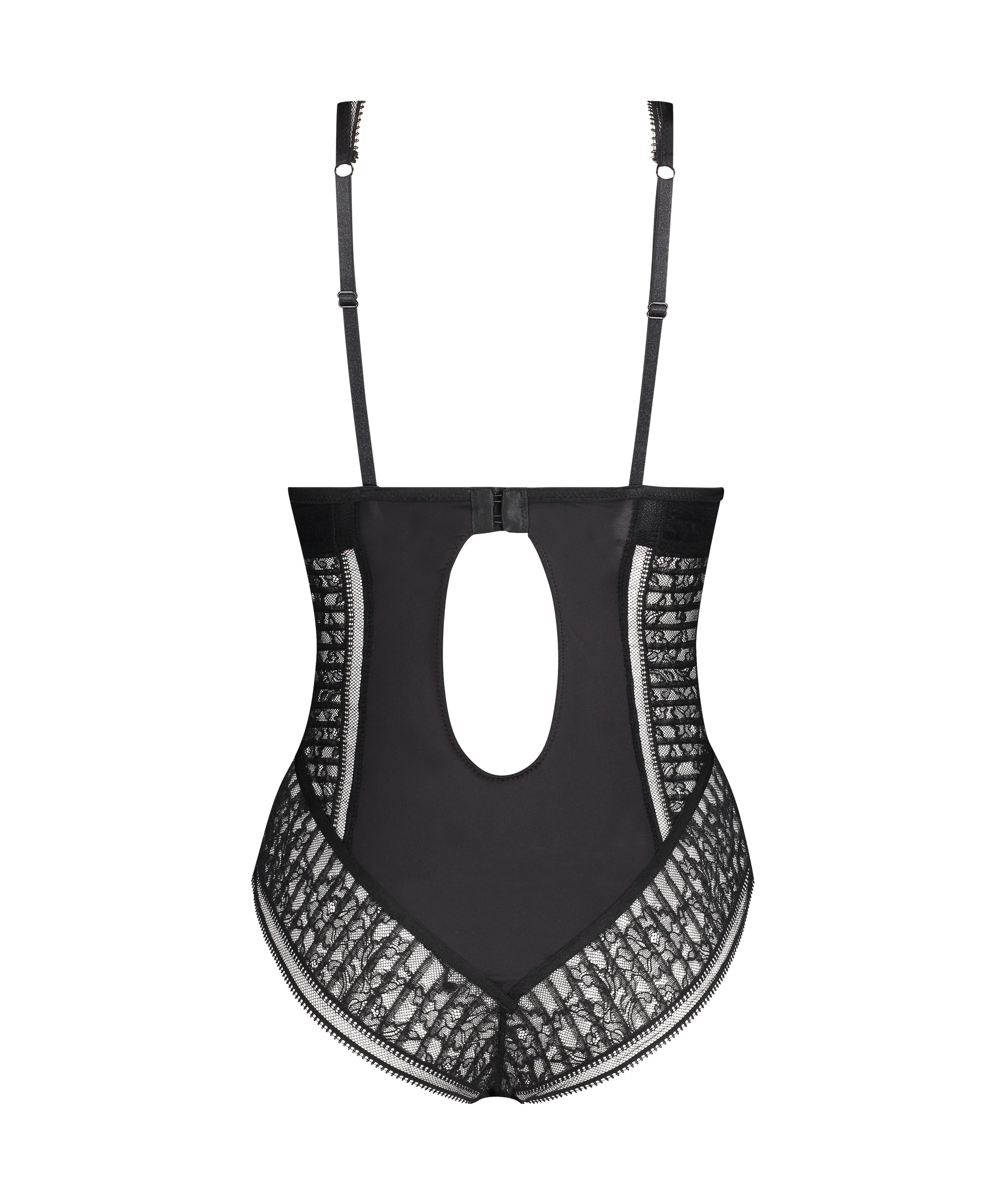 ¡Siéntete de lo más femenina con este bodi! Está hecho de una combinación de un tejido semitransparente y de encaje. Tiene botones de presión en la parte inferior, así que te lo podrás poner y quitar con facilidad. ¿Qué más quieres? Forma parte de la colección I AM Danielle.