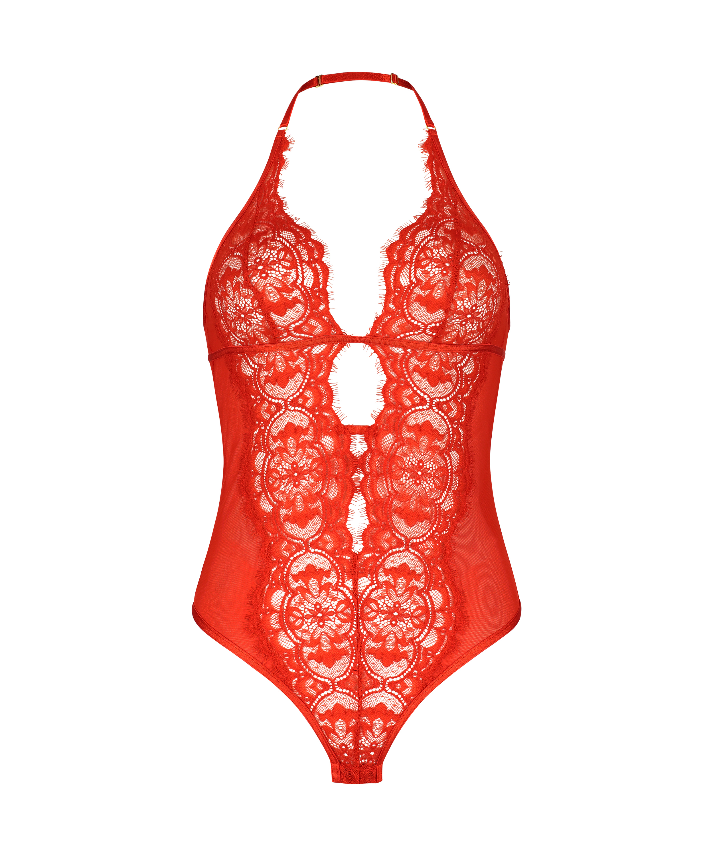 ¡Siéntete segura con bonito bodi! El bodi tiene detalles de encaje y rejilla. Los tirantes en el cuello son ajustables, por lo que se adaptan muy bien al cuerpo. ¡Combínalo con un kimono a juego de la colección de ropa de dormir para completar tu look!