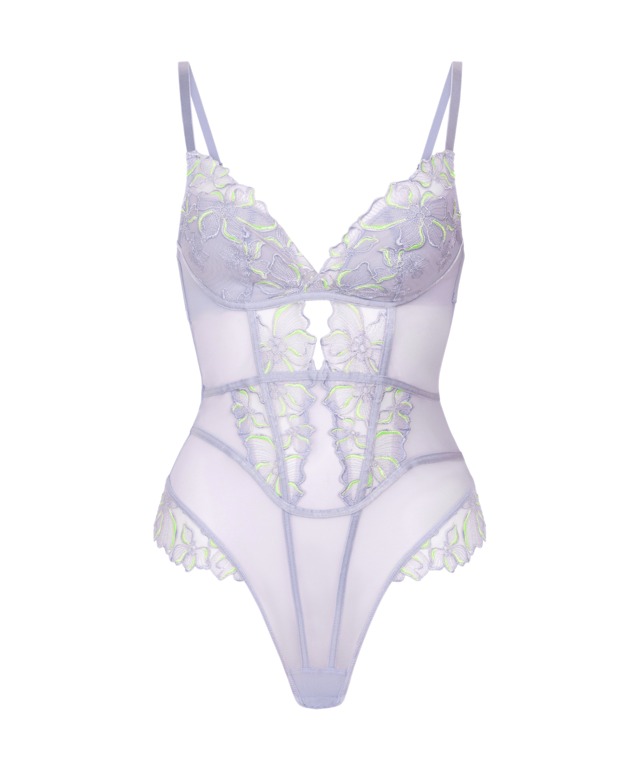 Este bodi está diseñado para una sujeción suave; con detalles de malla y encaje, esta prenda aúna comodidad y feminidad. Las copas con relleno y sin aros proporcionan una forma natural, mientras que el detalle de abertura añade un toque coqueto.