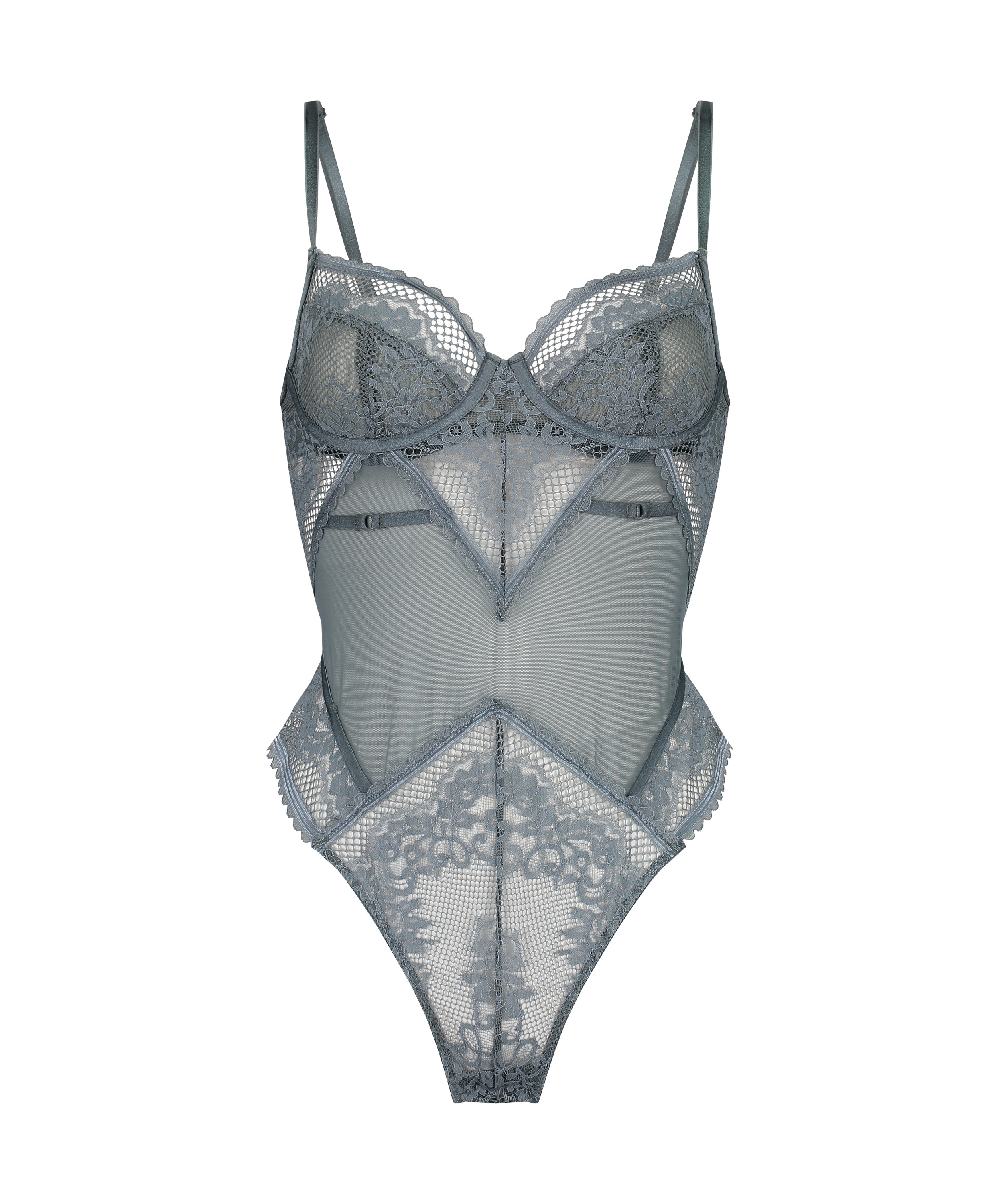 ¡Luce cuerpazo 10 con este bodi! Contiene encaje y malla, y además es transparente. Combínalo con un bonito kimono para conseguir un look de ensueño.