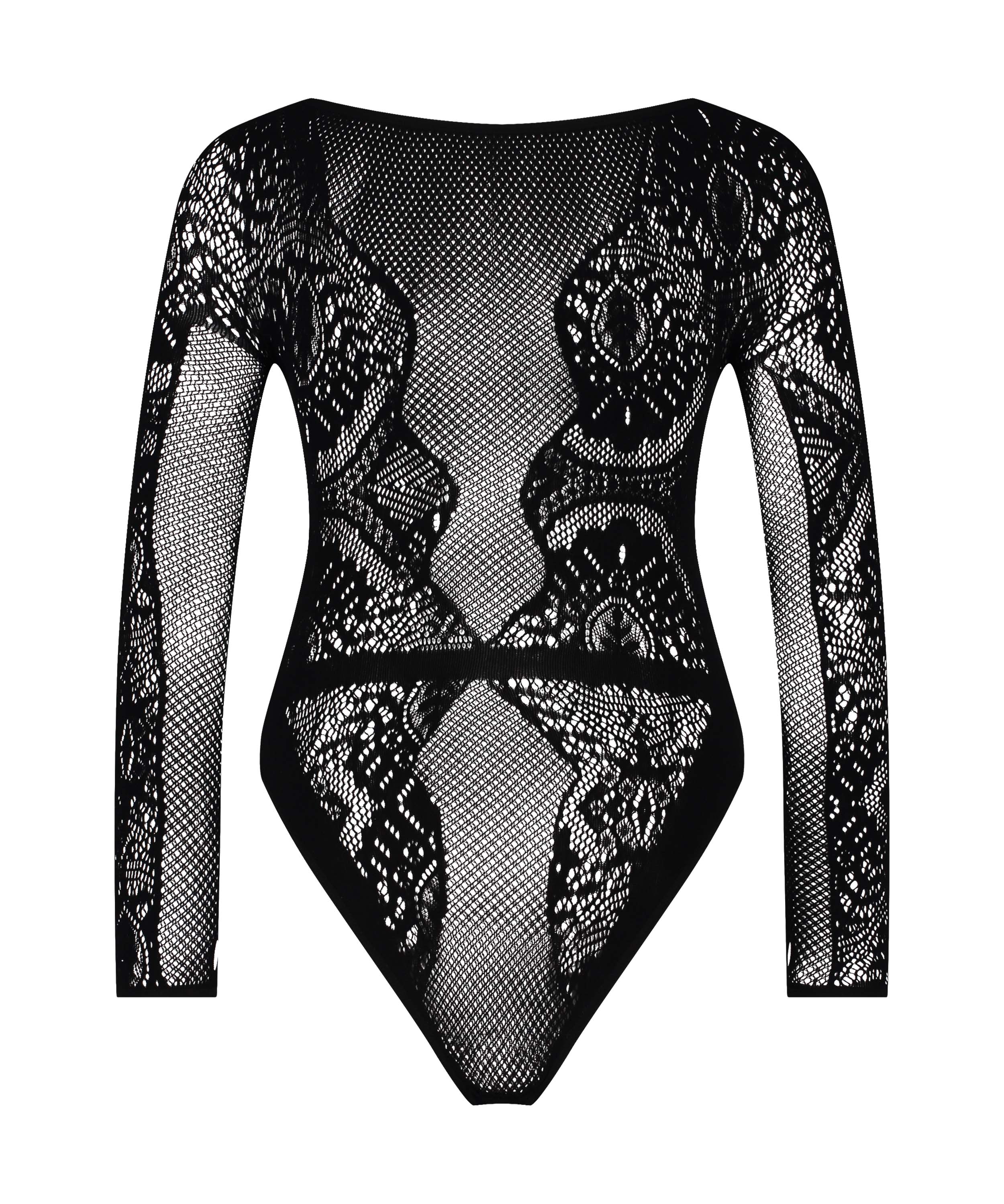 El impresionante bodi de malla se puede llevar como prenda exterior y tiene con paneles contorneados que acentúan tus curvas, ¡por lo que querrás llevarlo siempre que puedas! Hay incluso un descarado tanga de pierna alta y mangas largas con orificios para los pulgares que darán este toque especial tu atuendo.