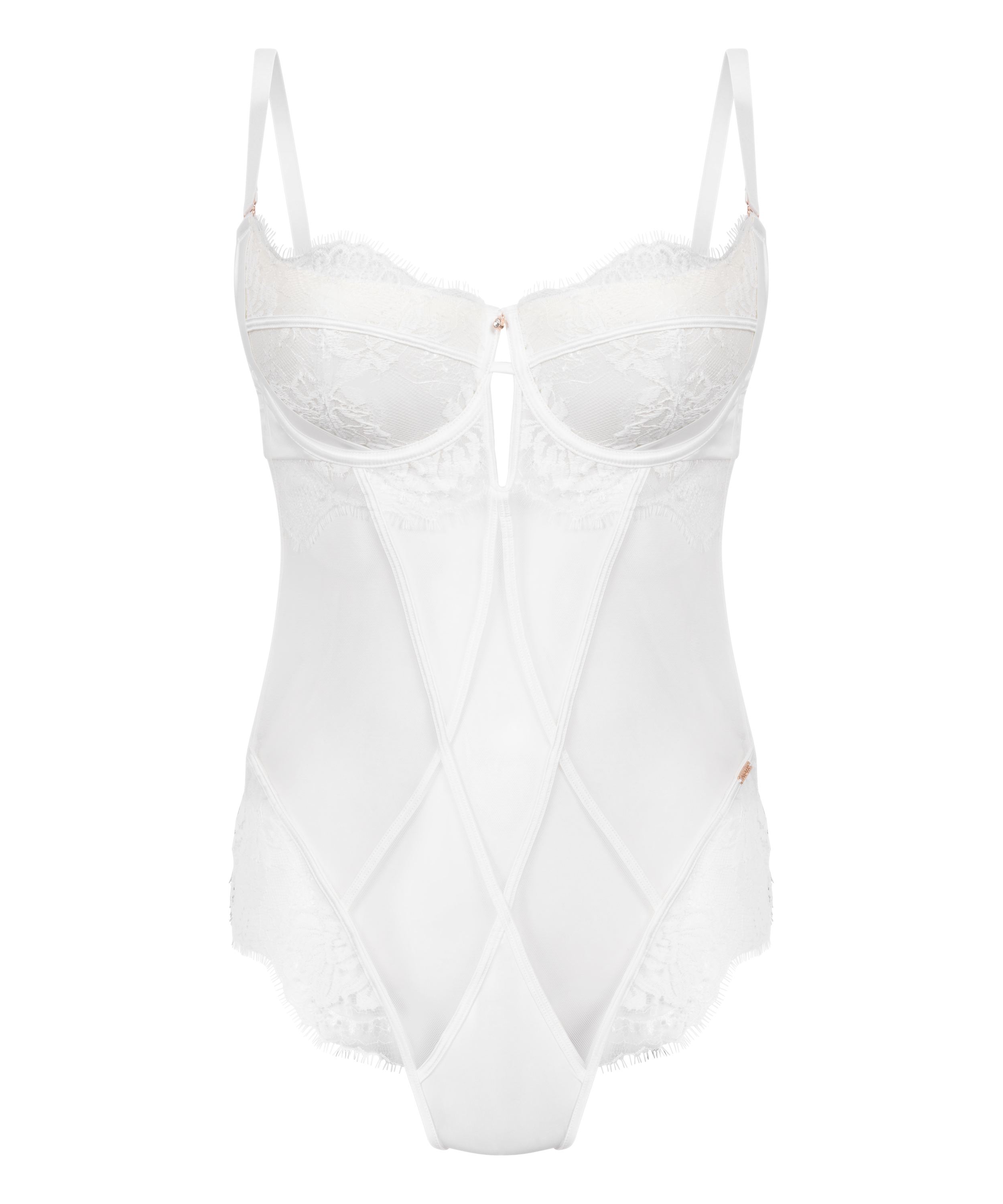 Saca a la luz tu confianza interior con nuestro body Tiah. El encaje aporta un toque romántico, mientras el satén realza tus curvas con su tacto suave y lujoso. La malla ofrece una seductora ventana a tu piel, dándote el toque perfecto de elegancia.