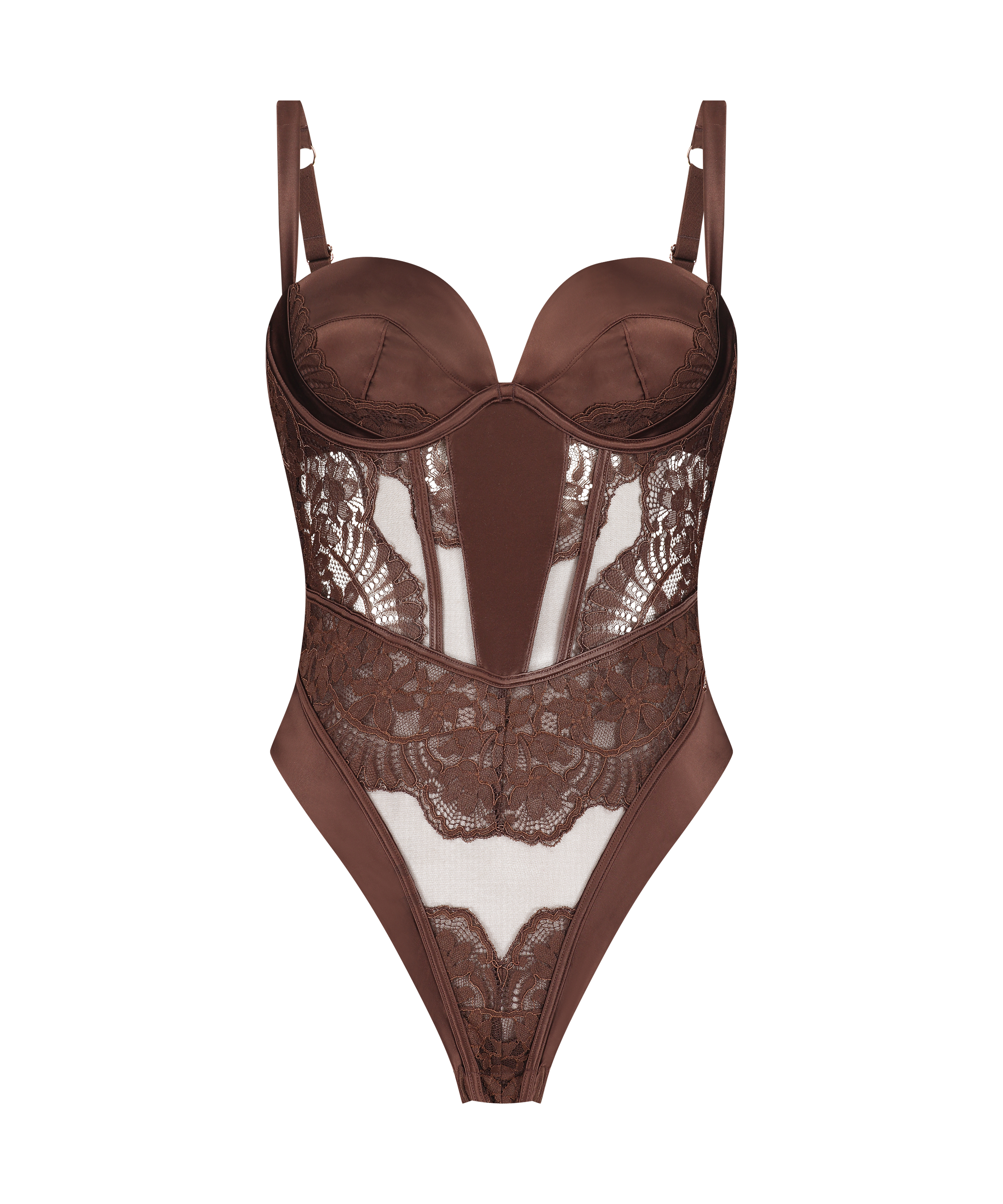 Este body no puede faltar en tu armario. ¡Te enamorará! Está totalmente decorado con encaje para darle un acabado semitransparente. Te encantará. con una sexy braguita tipo tanga y un cierre de botón a presión en la parte inferior, rematado con bonitos detalles de tejido satinado. Combínalo con un kimono para completar esta impresionante pieza como conjunto. Forma parte de nuestra colección Noir.