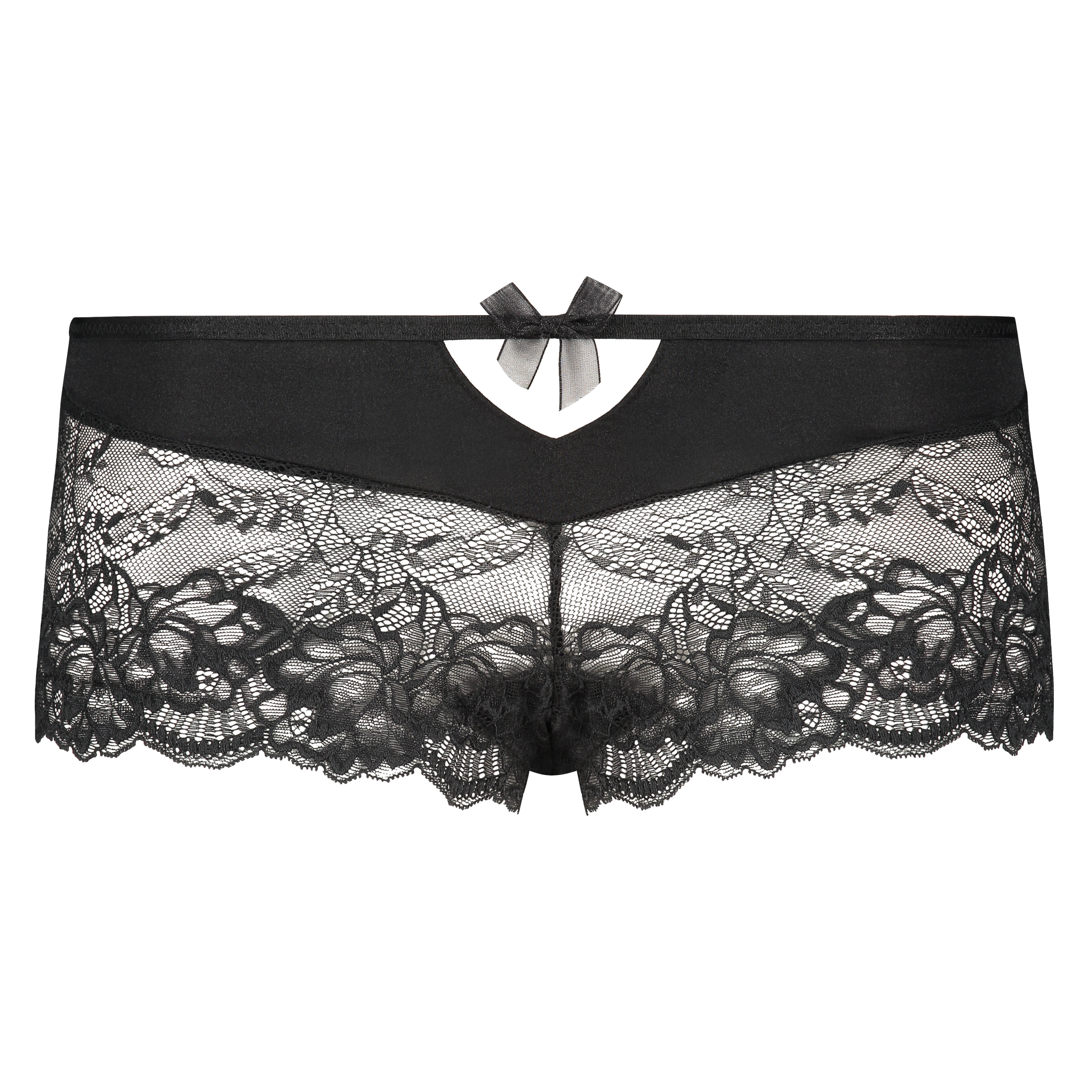 ¿Te parece sexi este bóxer? Tiene un acabado de encaje en la parte inferior y tiene una hendidura en la parte superior. También tiene un lacito en el medio.