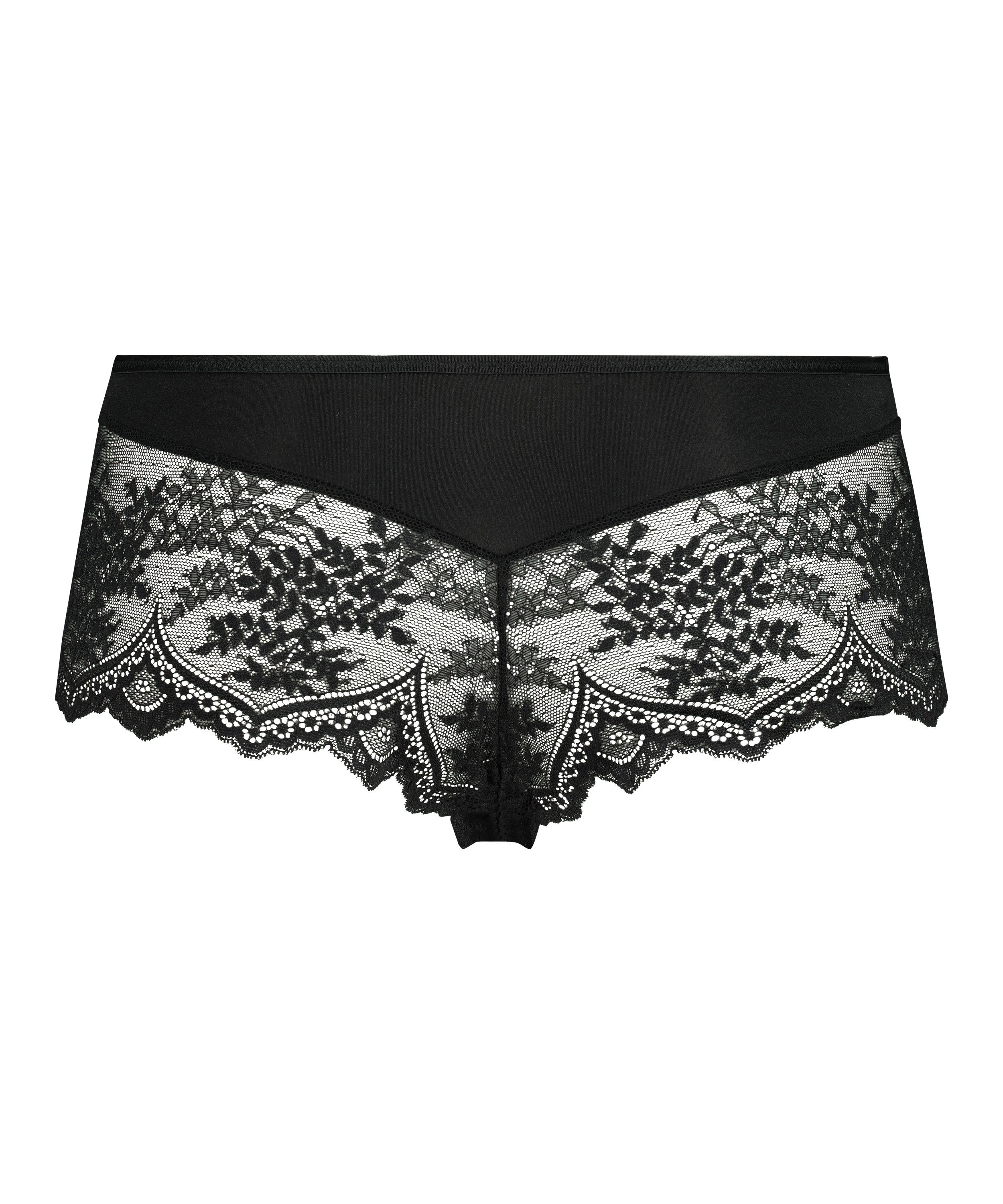 ¡Este bóxer tan sexi queda bien a todo el que lo luzca! La braguita está hecha principalmente de encaje y se ajusta muy bien. Tiene un lazo en la parte frontal. Combínala con un sujetador o bralette a juego para lucir un conjunto bonito.
