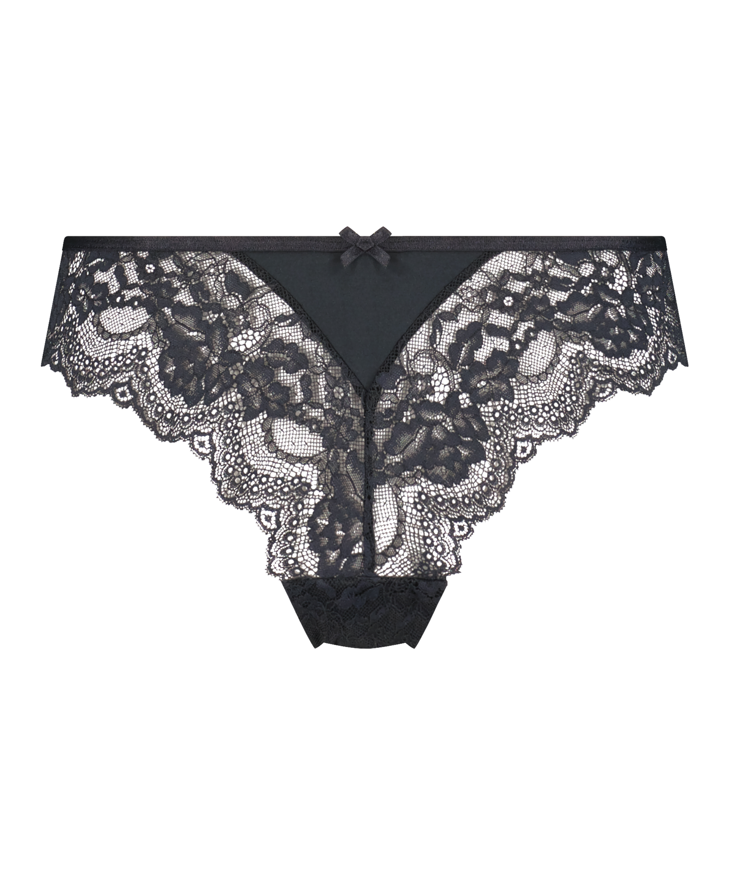 ¡No te pierdas esta supercómoda braguita brasileña! Tiene un look integral de encaje junto con detalles de microfibra y viene rematada con un lindo lacito. ¡A combinar con tu sujetador preferido!