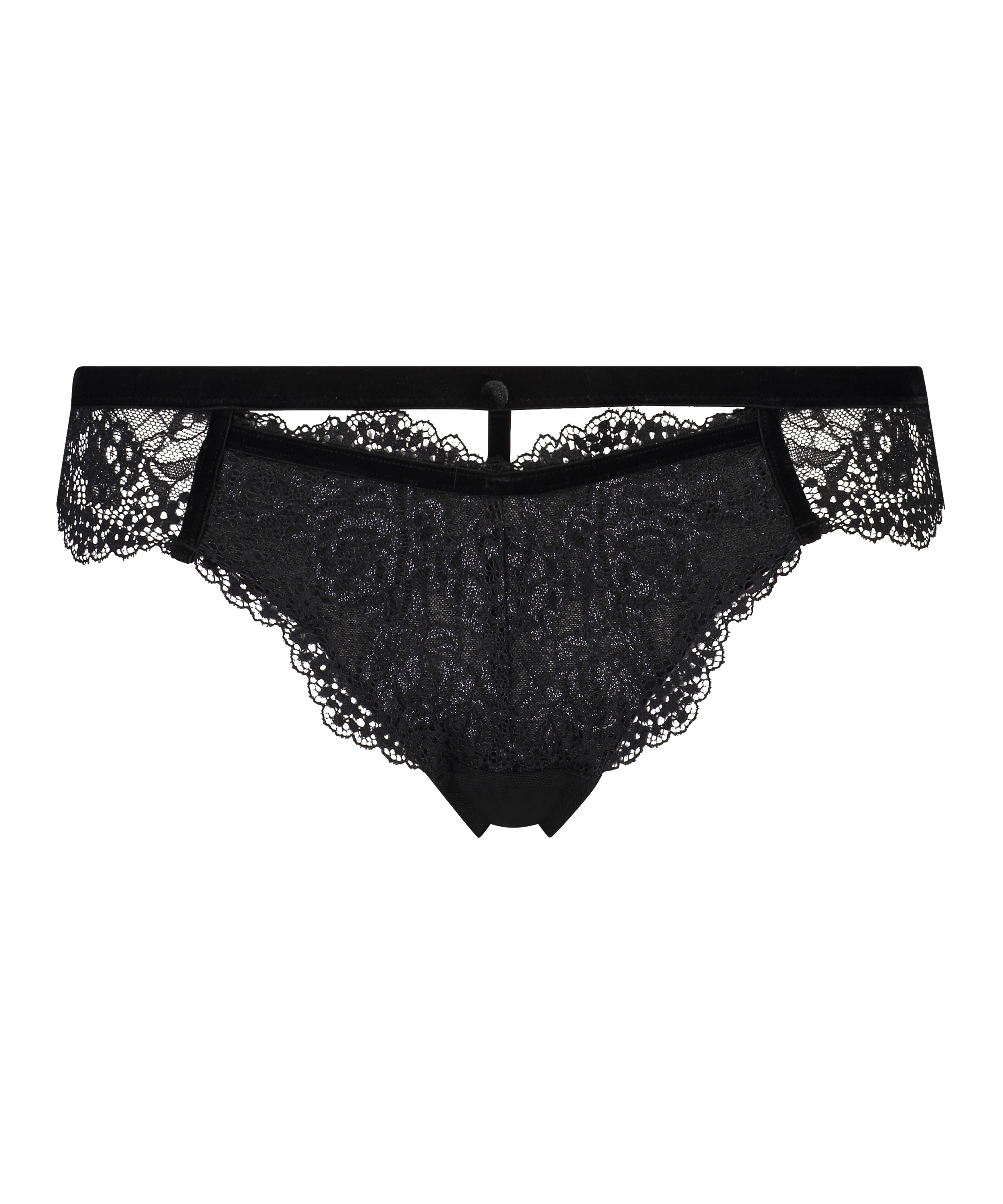 Esta braguita brasileña no puede faltar en tu colección de lencería. El encaje y el terciopelo dan un toque sexi a la braguita brasileña y tiene un detalle recortado en la parte delantera, ¡super sexi! Combínala con los artículos a juego para completar un conjunto.