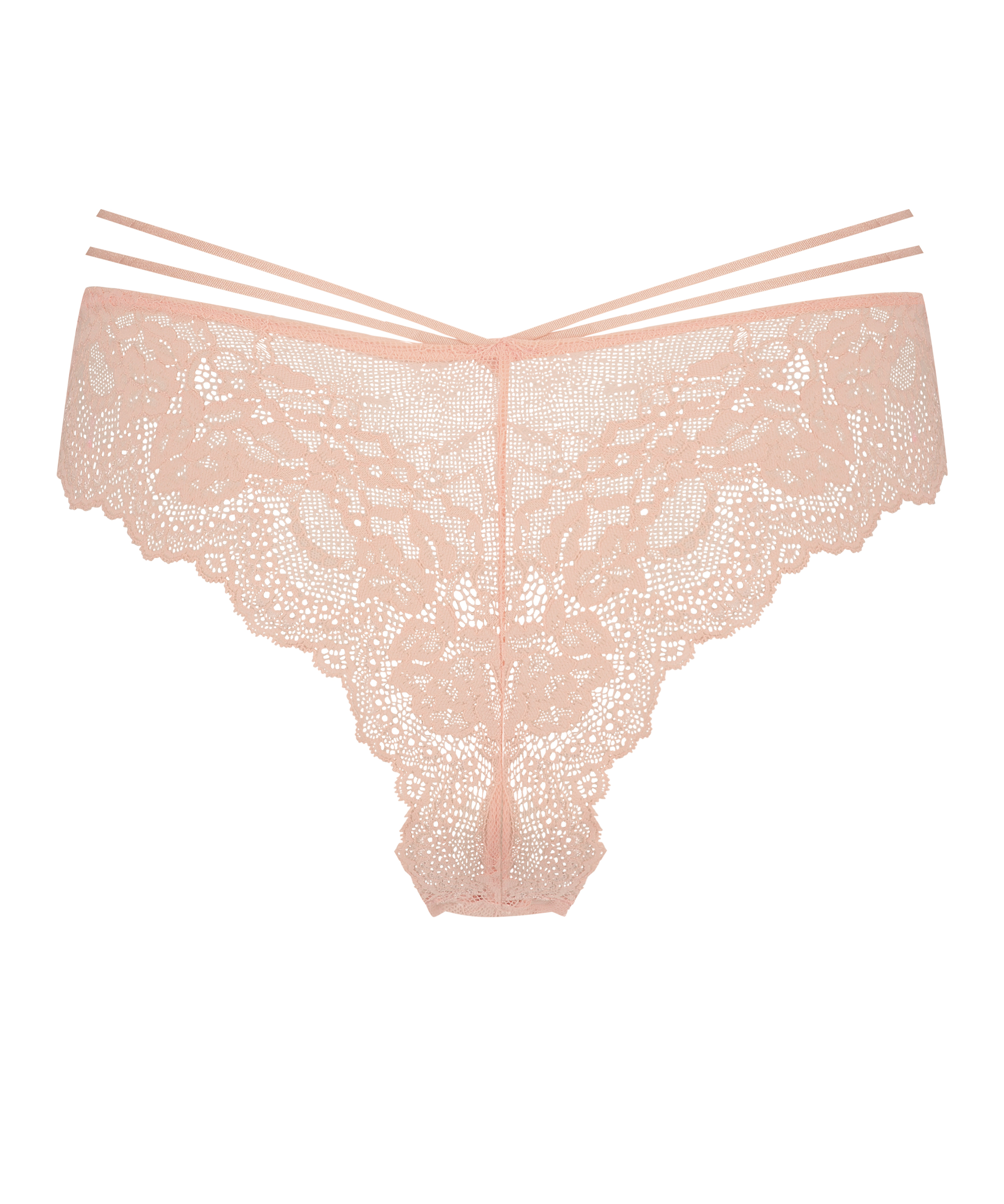 ¡Esta braguita brasileña no puede faltar en tu armario! Con mucho encaje romántico para darle un aspecto semitransparente, junto con detalles de tiras muy sensuales en las caderas. ¡Encuentra un sujetador a juego para completar el conjunto!