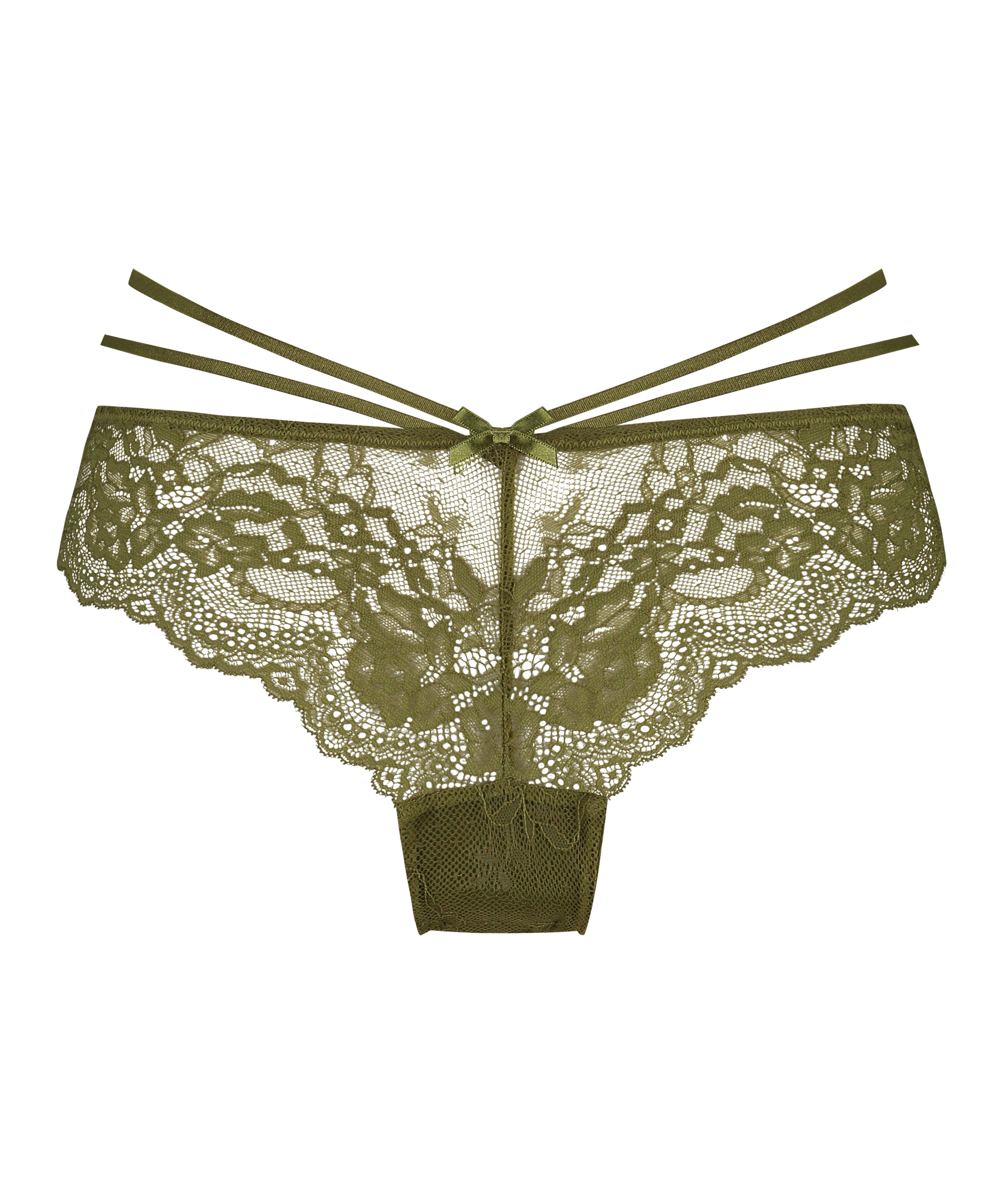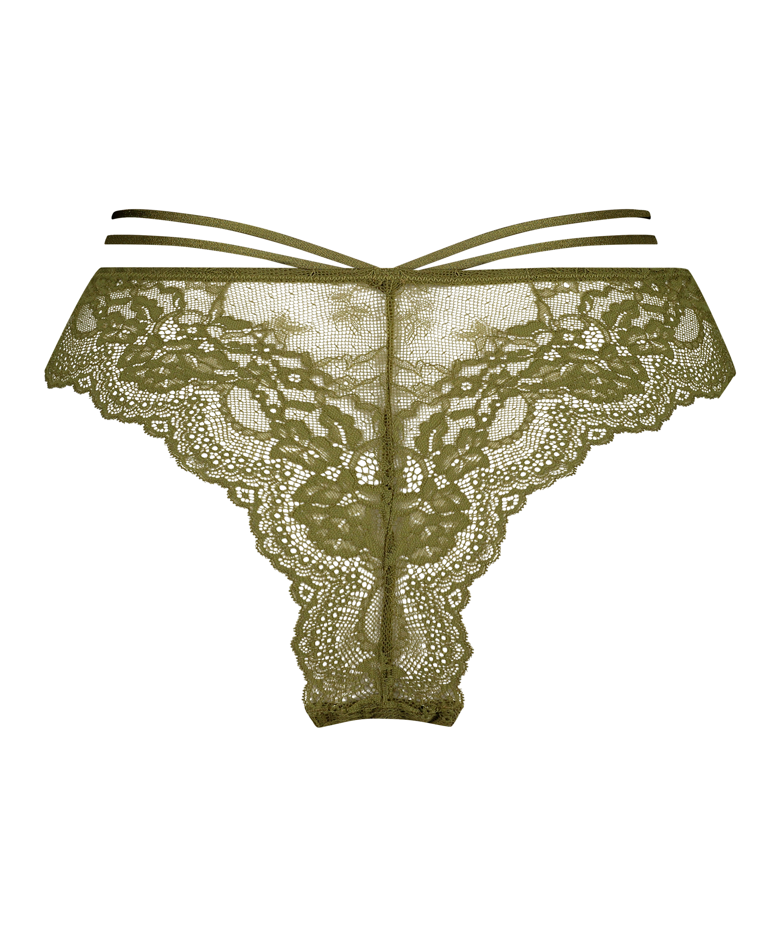 ¡Esta braguita brasileña no puede faltar en tu armario! Con mucho encaje romántico para darle un aspecto semitransparente, junto con detalles de tiras muy sensuales en las caderas. ¡Encuentra un sujetador a juego para completar el conjunto!