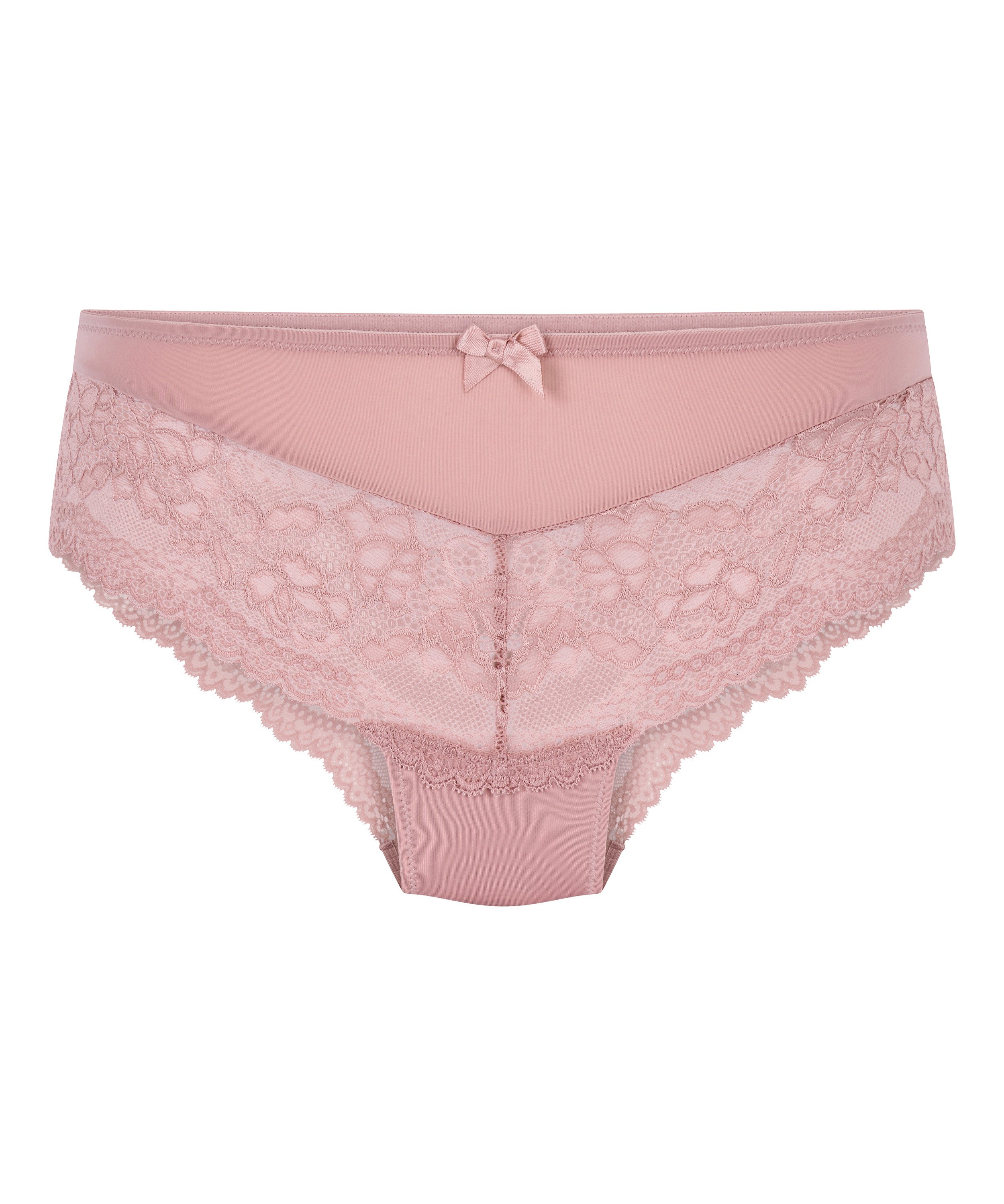 Elige la comodidad con esta preciosa braguita brasileña. La braguita tiene un acabado con encaje y un lacito en la parte delantera. Puedes combinarla con un montón de artículos, ¡así que no puede faltar en tu colección! Este artículo esencial súper cómodo tiene un tacto nuevo y mejorado, muy suave y elástico. Con un hermoso cordón floreado que hace que este estilo esté más de moda.