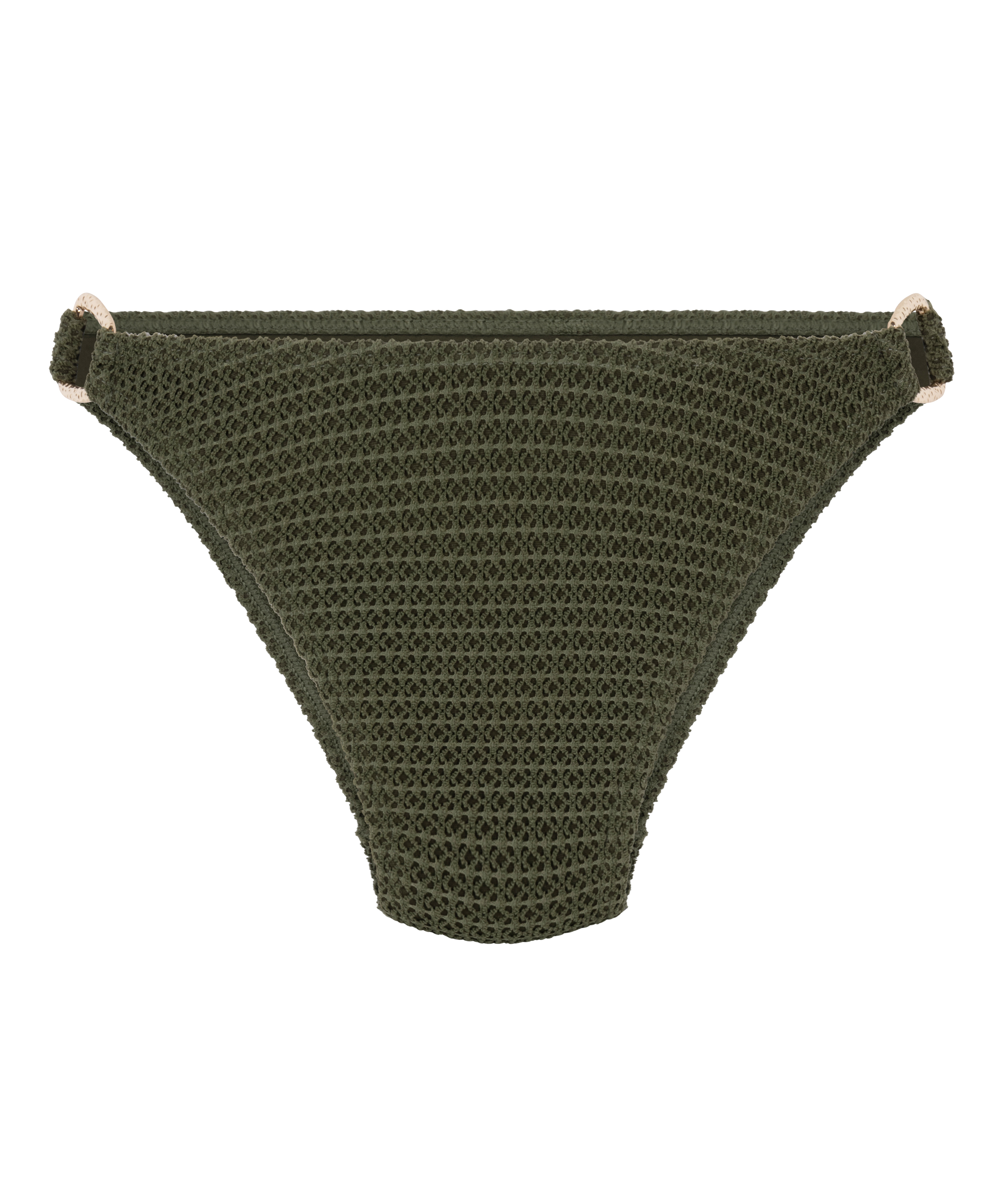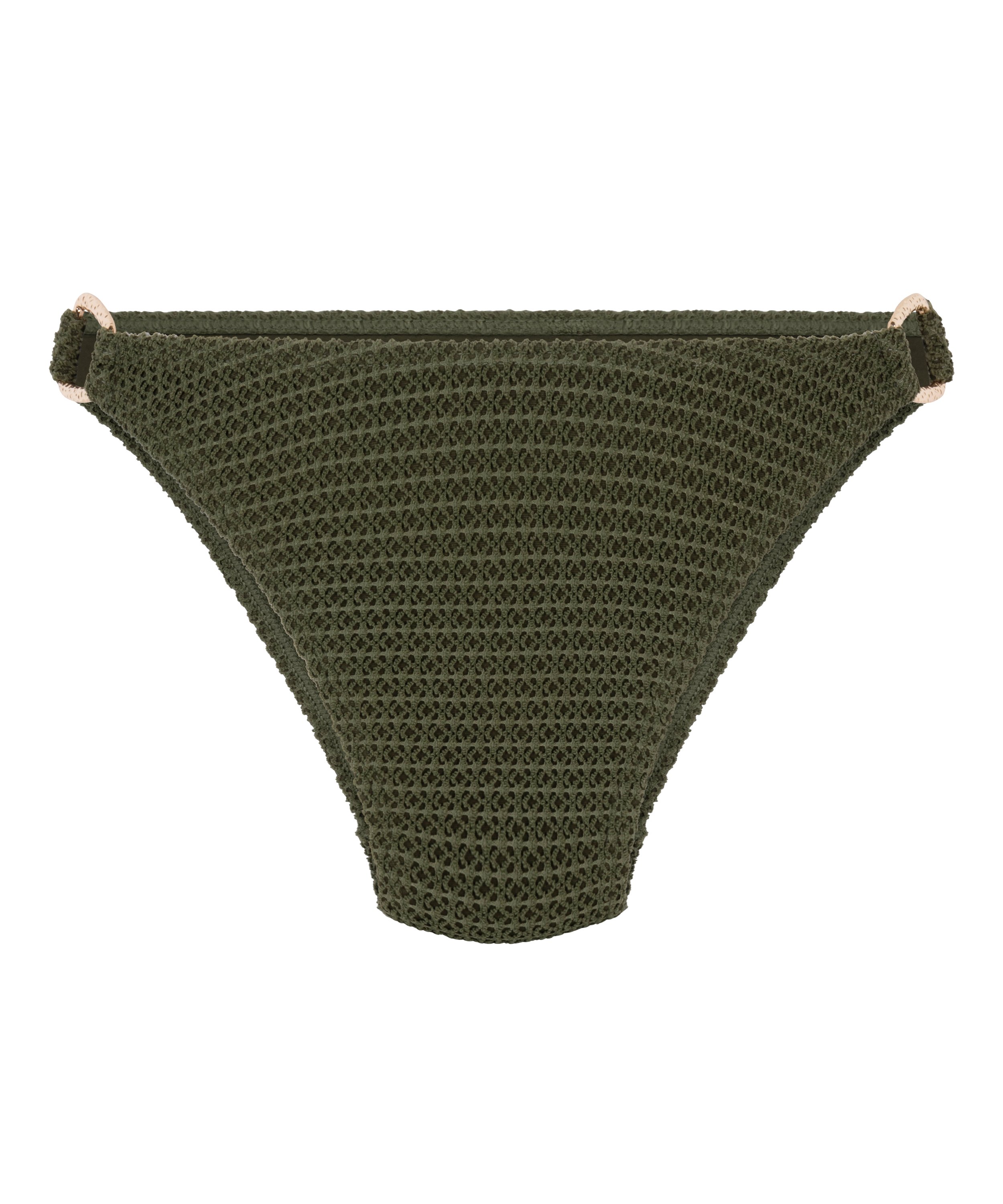 Llama la atención en la playa con nuestra braguita de bikini de talle alto. Se ha diseñado para estilizar las piernas y realzar tu silueta. Esta prenda dispone de detalles dorados en ambos laterales que aportan un toque de lujo a tu colección de baño.