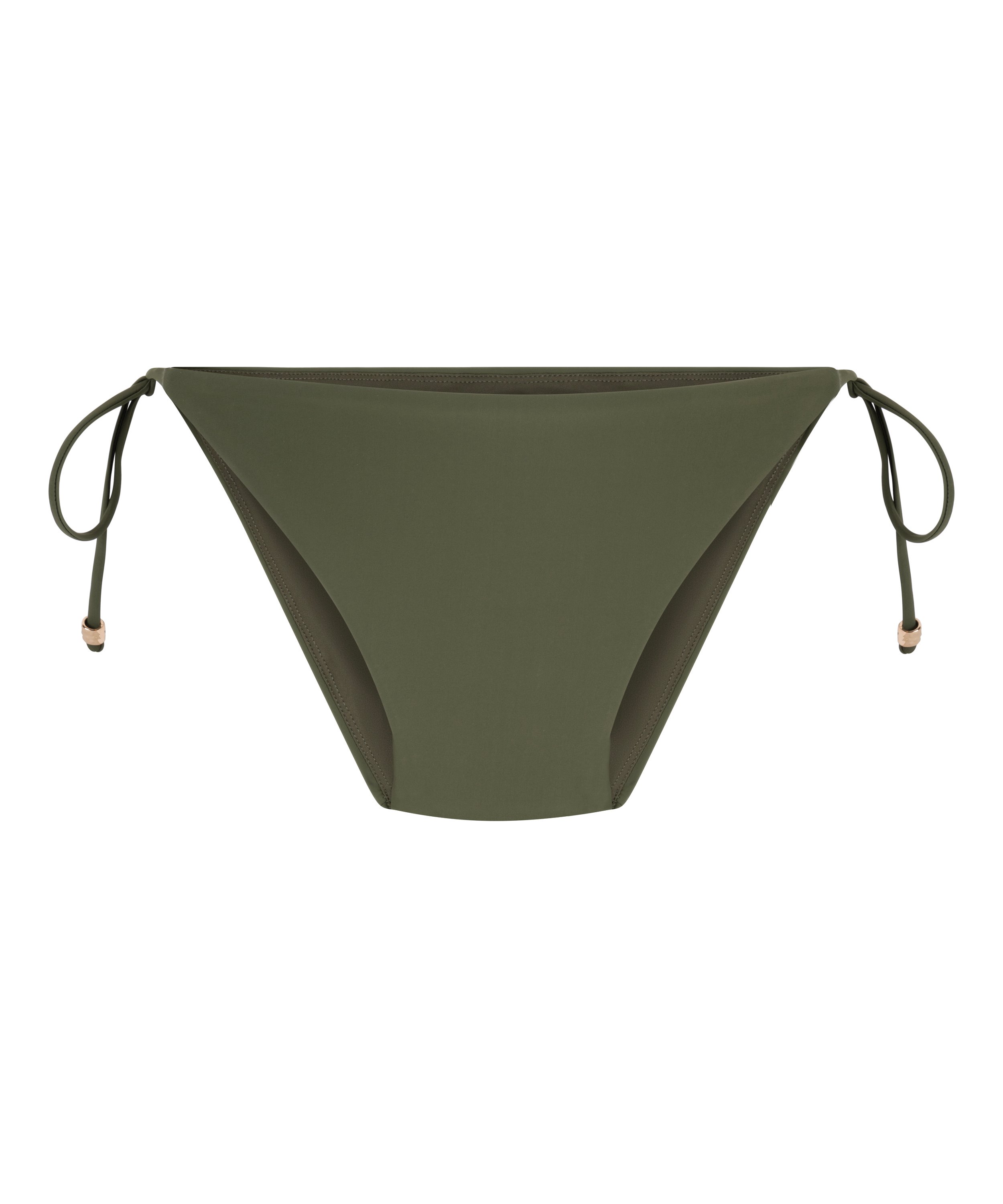 Llama la atención con esta braguita de bikini, con cierres laterales para un ajuste regulable y favorecedor. Los detalles de tachuelas en los extremos de los lazos añaden un toque de glamour vanguardista, mientras que el pequeño detalle recortado en la espalda aporta un toque sutil y coqueto.