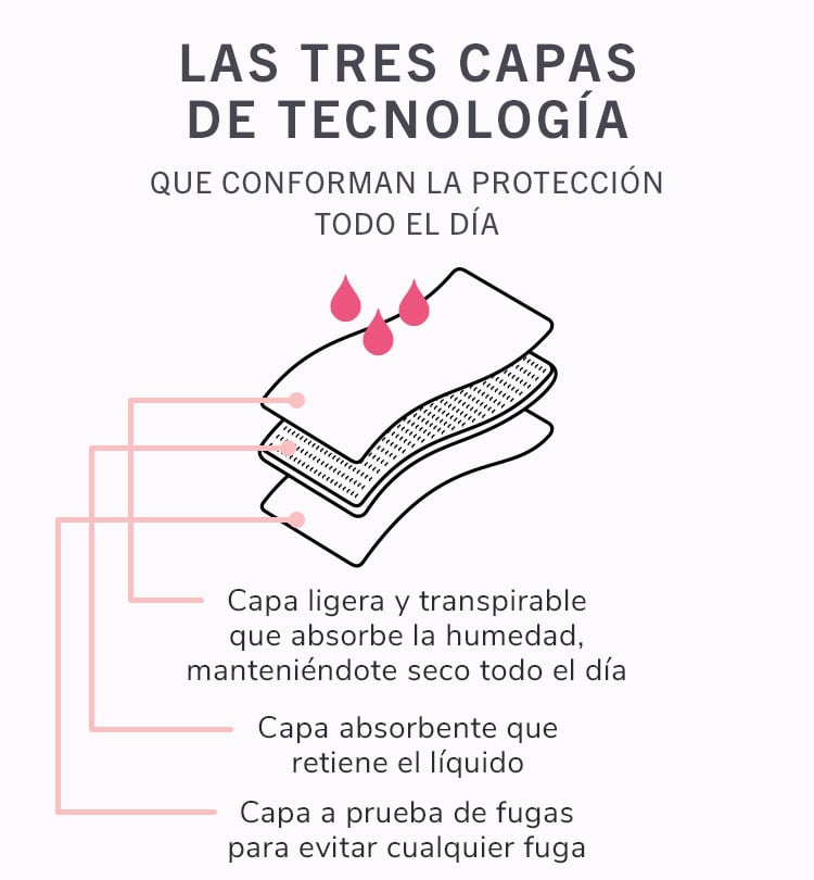- ● A prueba de fugas: La tecnología absorbente de varias capas garantiza que no tengas que preocuparte por las fugas.