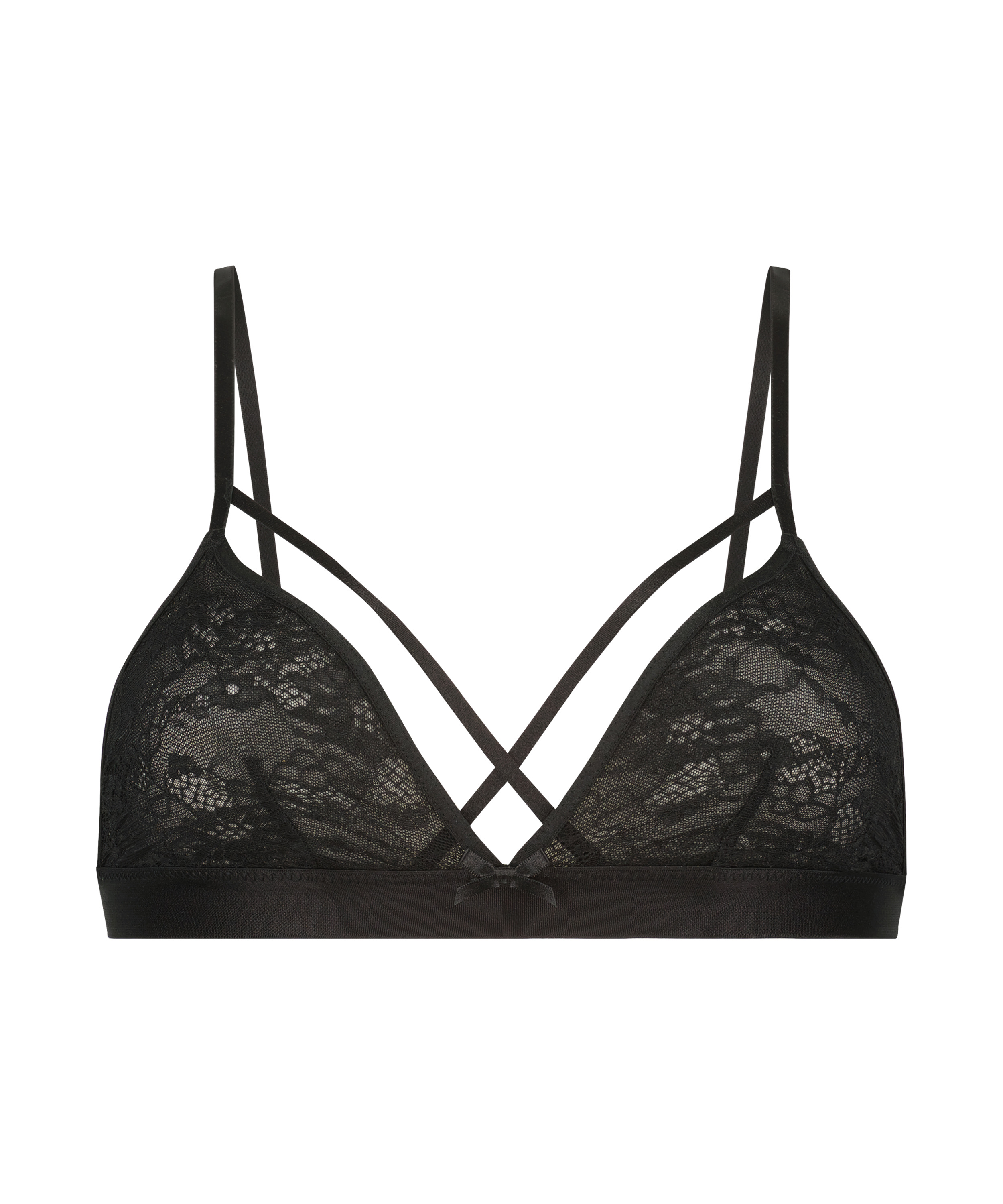 ¿A que es muy bonito este bralette? Tiene bonitos detalles de tiras, no está preformado y no tiene tirantes, ¡así que es muy cómodo! Combínalo con unas braguitas ideales del mismo color.