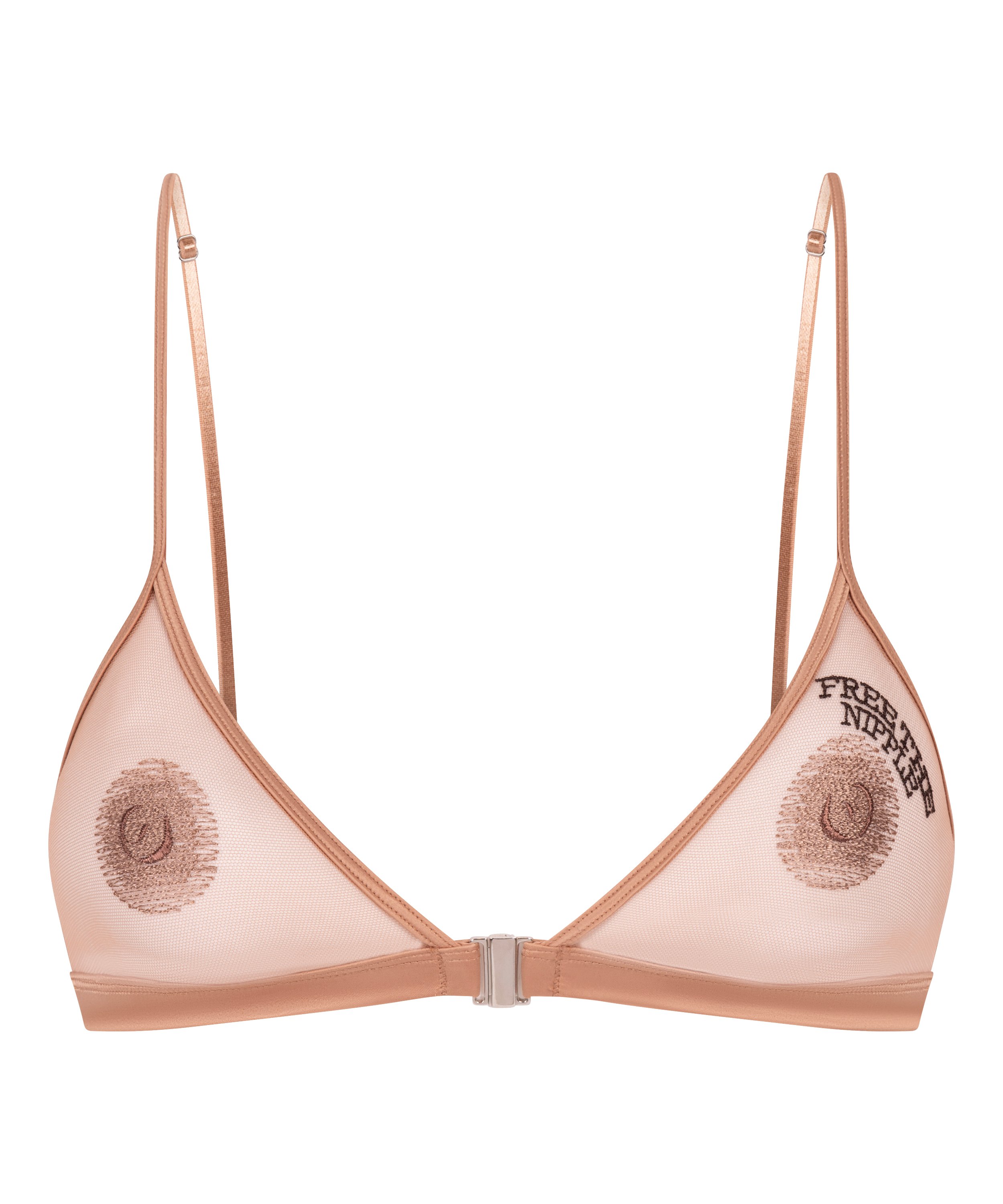 El exclusivo bralette 'Free the Nipple' es una edición limitada con un diseño juguetón: pezones bordados. El bralette destacada de una forma divertida que los pezones son una parte más del cuerpo de la mujer y no tienen por qué ocultarse. A la vez, el bralette alude a la estricta censura en redes sociales, donde constantemente son desenfocados.