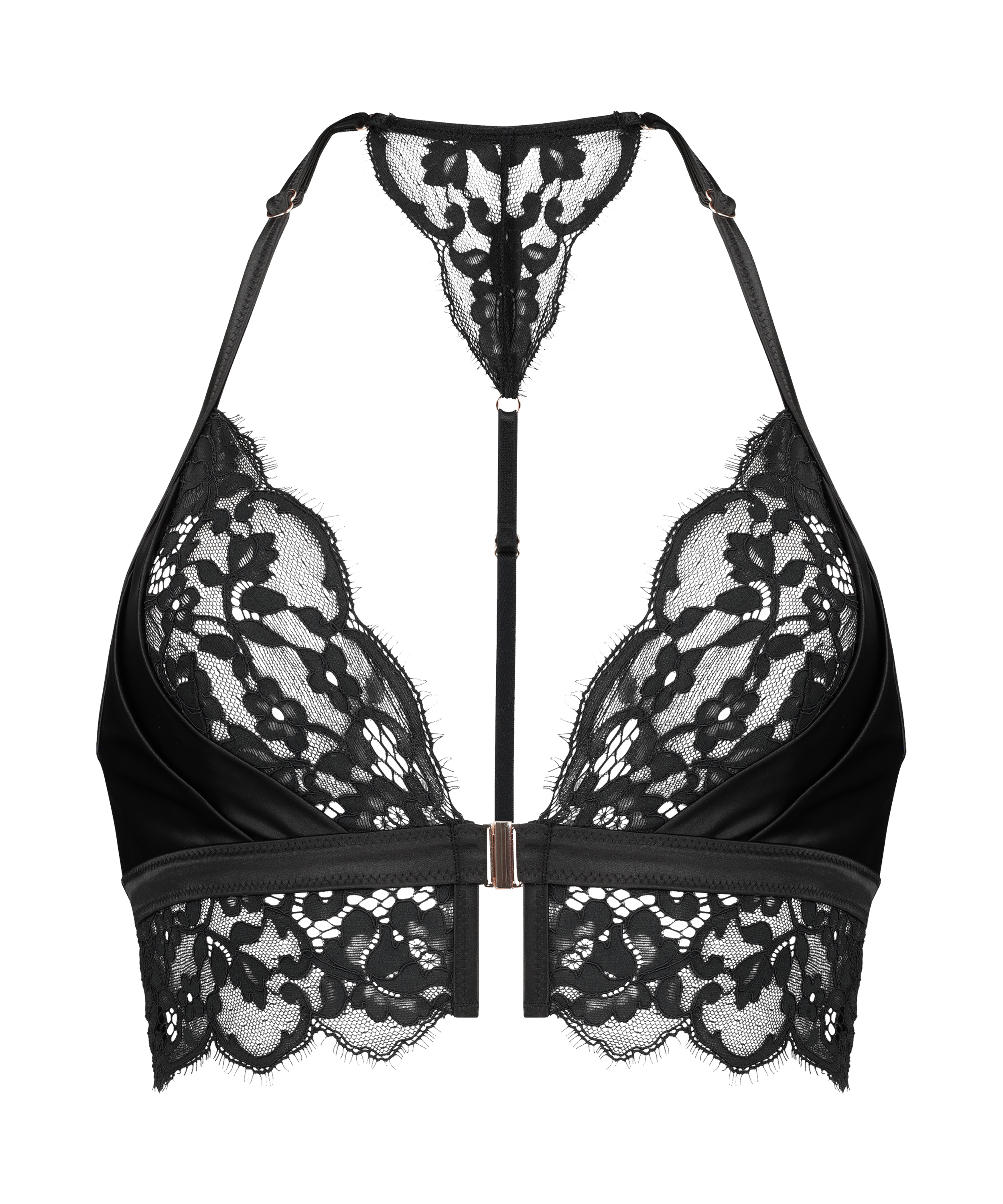 ¡Qué ideal es este bralette! Cuenta con mucho encaje y no tiene aros, ¡así que es supercómodo! Combínalo con otros artículos a juego de la colección Noir.