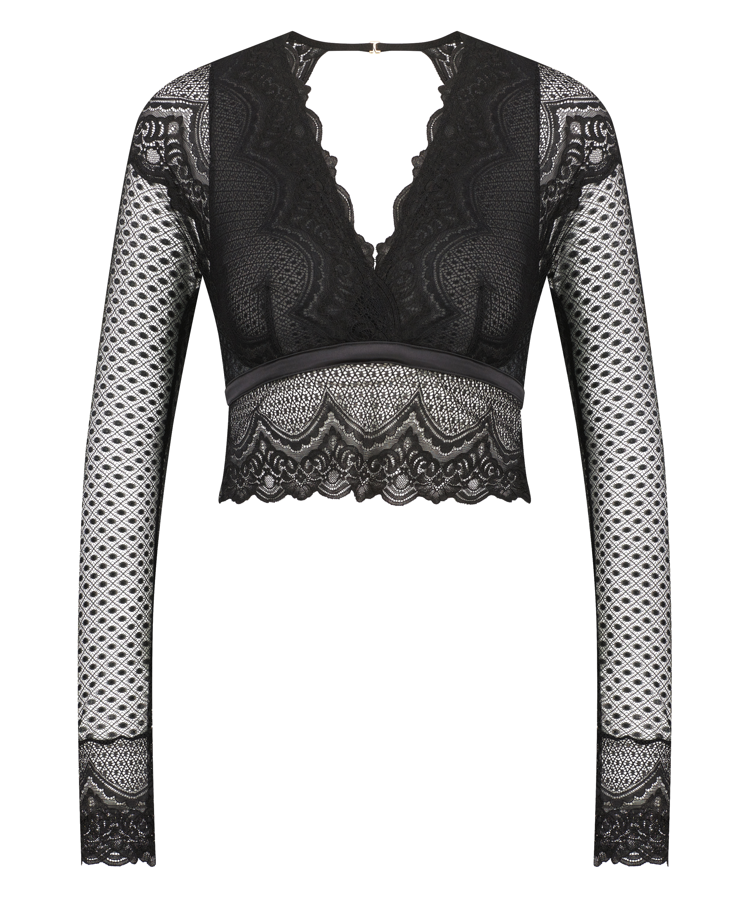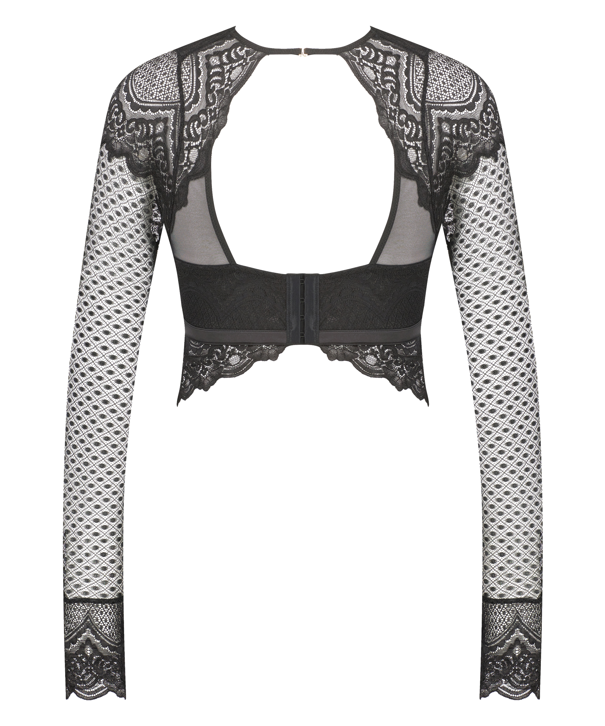 ¡Siéntete sexy con este sujetador bralette! El bralette de manga larga está cubierto de encaje para un aspecto más sexy. Las copas sin relleno y la espalda abierta confieren mayor comodidad. Echa un vistazo a la colección de bragas a juego.