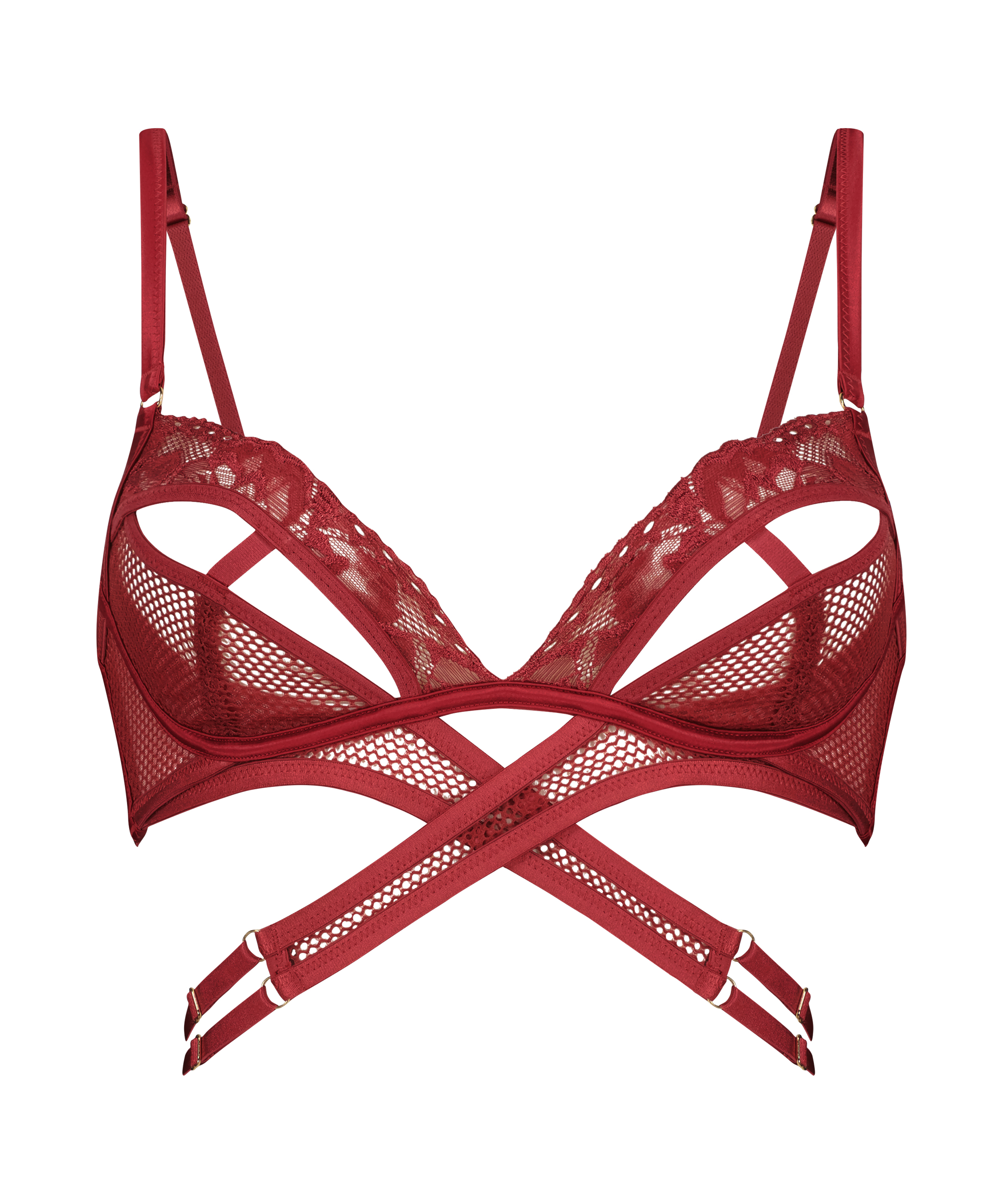¡Dale un toque picante a las cosas con este bralette supersexi! Está repleto de material de rejilla y detalles de tiras por todas partes. Cuenta con detalles recortados en las copas y la cintura. Ofrece un look muy especial. ¡Se puede combinar con las braguitas a juego! Forma parte de la colección Private.
