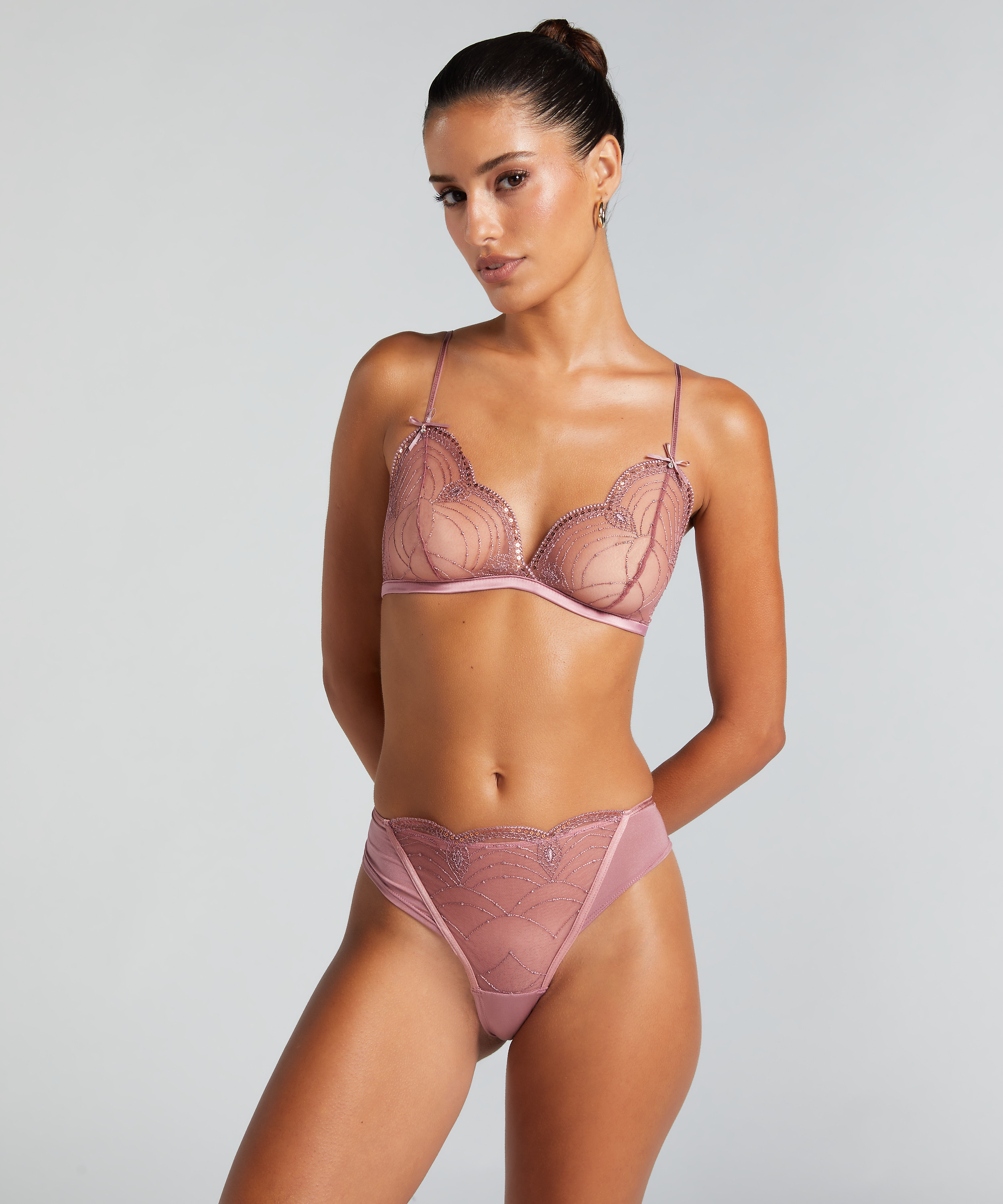 ¿Tú también te has enamorado de este maravilloso y precioso bralette? El sujetador no lleva aros para mayor comodidad y un aspecto deslumbrante. Se puede combinar con unas braguitas a juego para ir a conjunto.