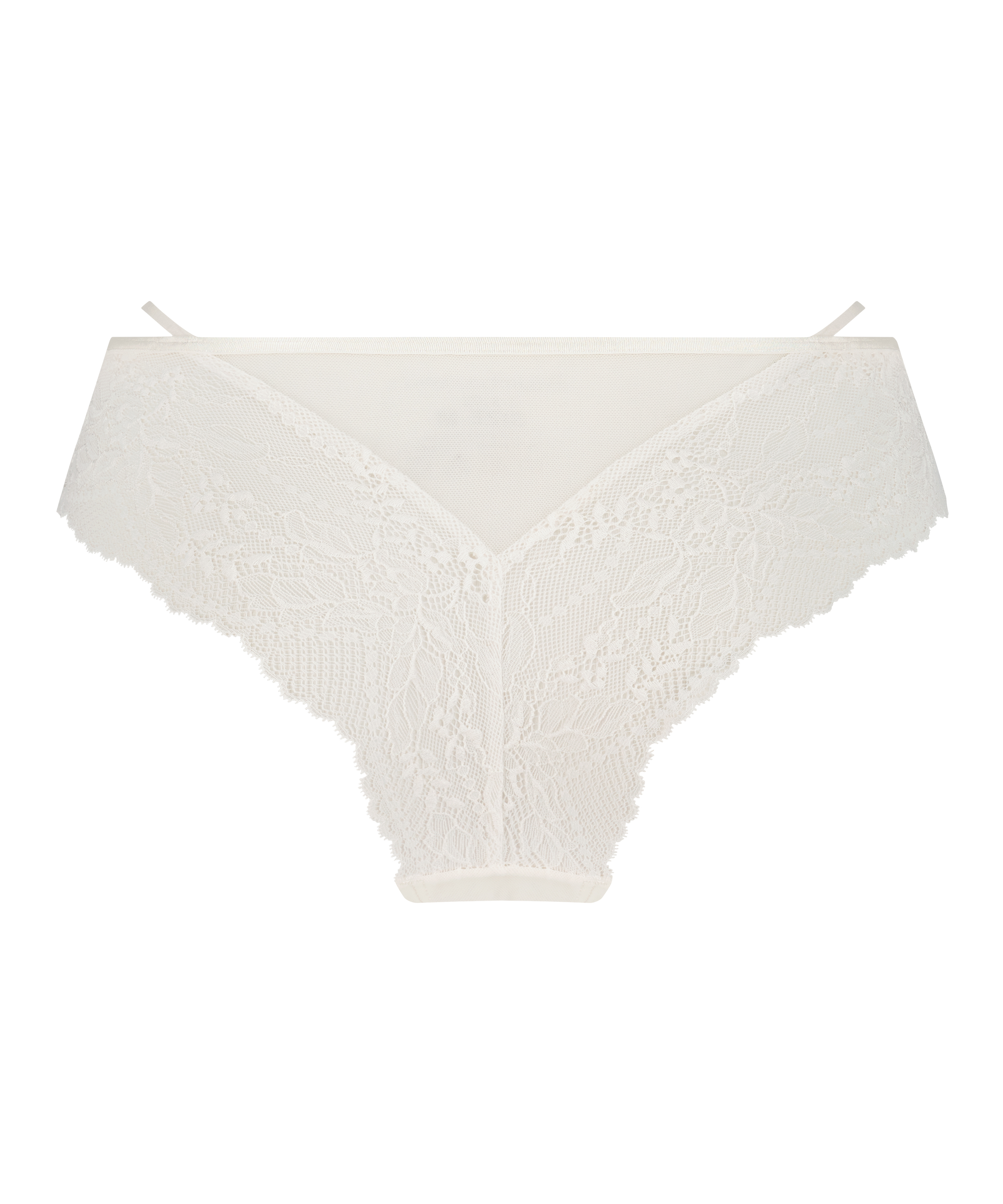 ¡Esta brasileña no pasa desapercibida para nadie! La braguita está confeccionada con mucho encaje y tiene un lazo en la parte delantera. Combina con un bralette o sujetador a juego para completar tu conjunto.