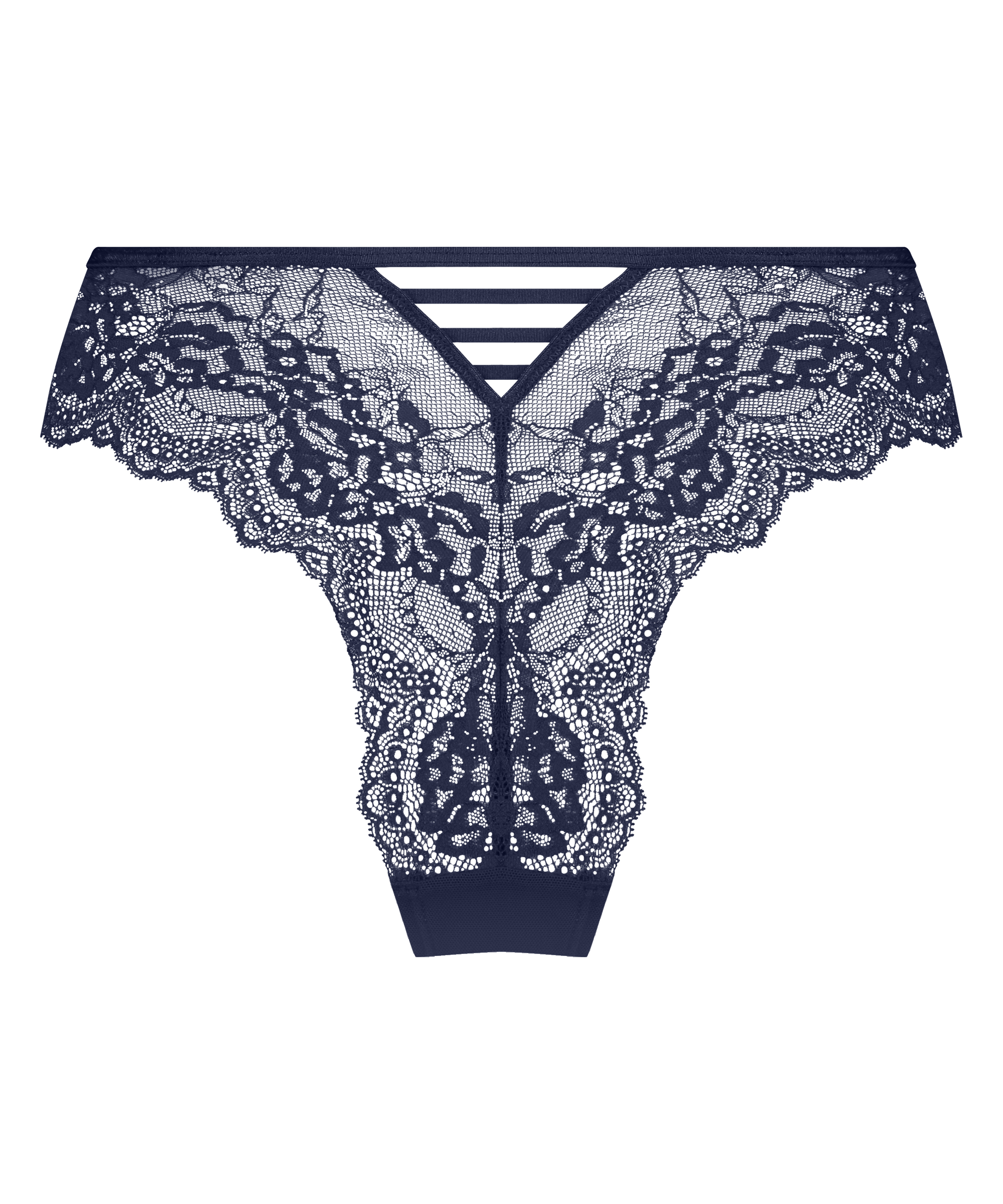 ¡Esta brasileña es lo más! ¡Los detalles de tiras en combinación con el bonito encaje completarán tu look! Combínala con tu sujetador favorito en el mismo color.