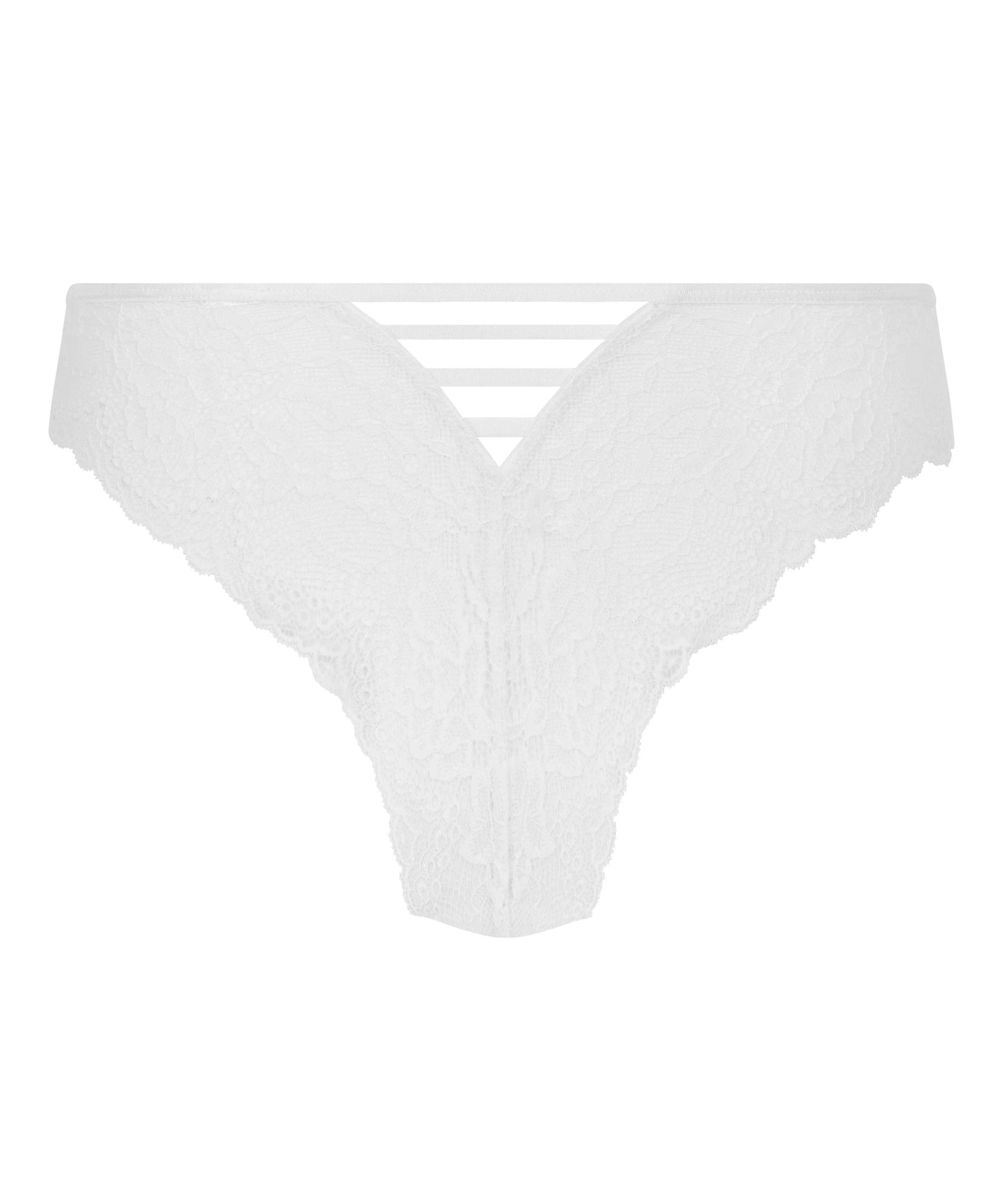 ¡Esta brasileña es lo más! ¡Los detalles de tiras en combinación con el bonito encaje completarán tu look! Combínala con tu sujetador favorito en el mismo color.