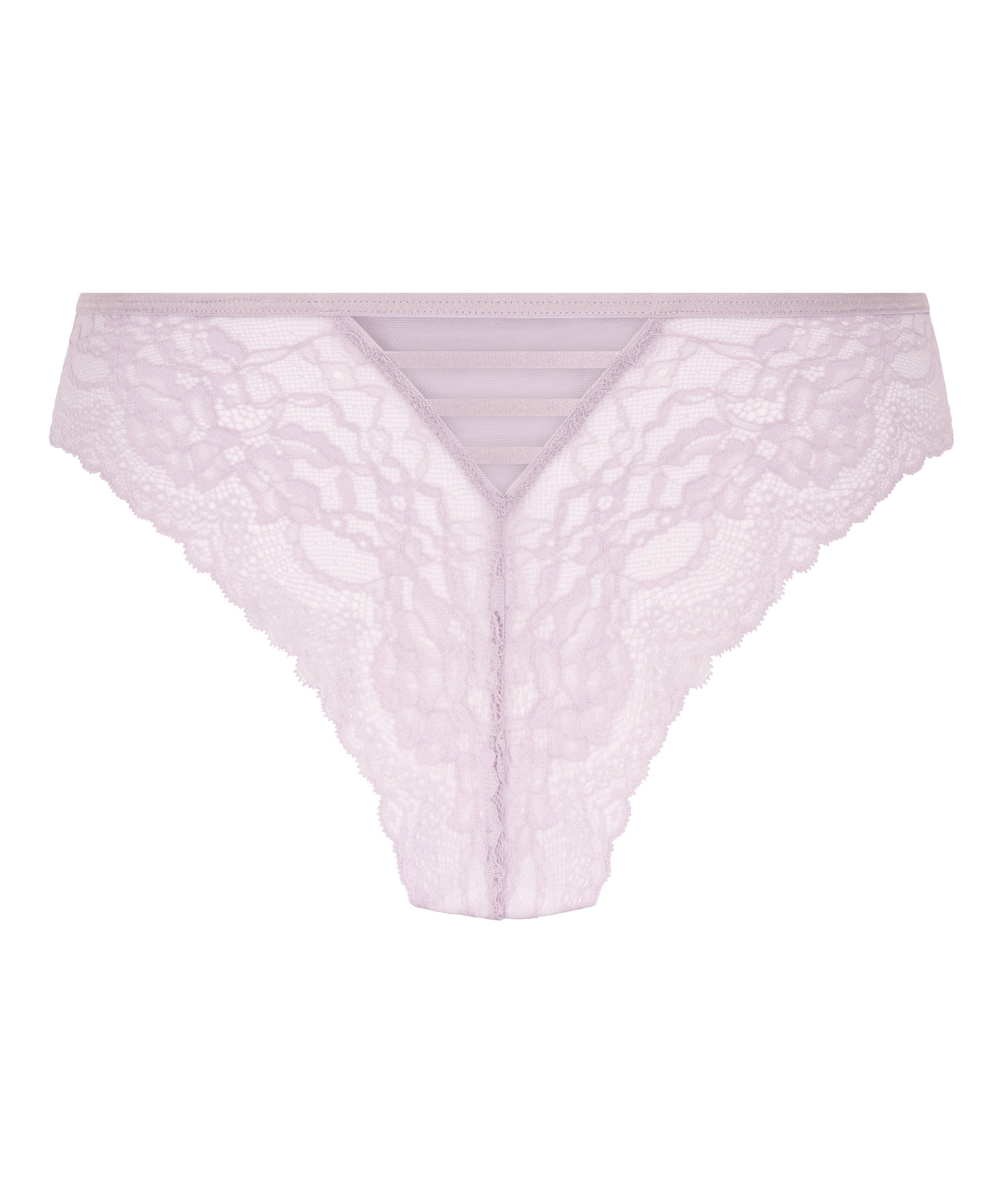 ¡Esta brasileña es lo más! ¡Los detalles de tiras en combinación con el bonito encaje completarán tu look! Combínala con tu sujetador favorito en el mismo color.