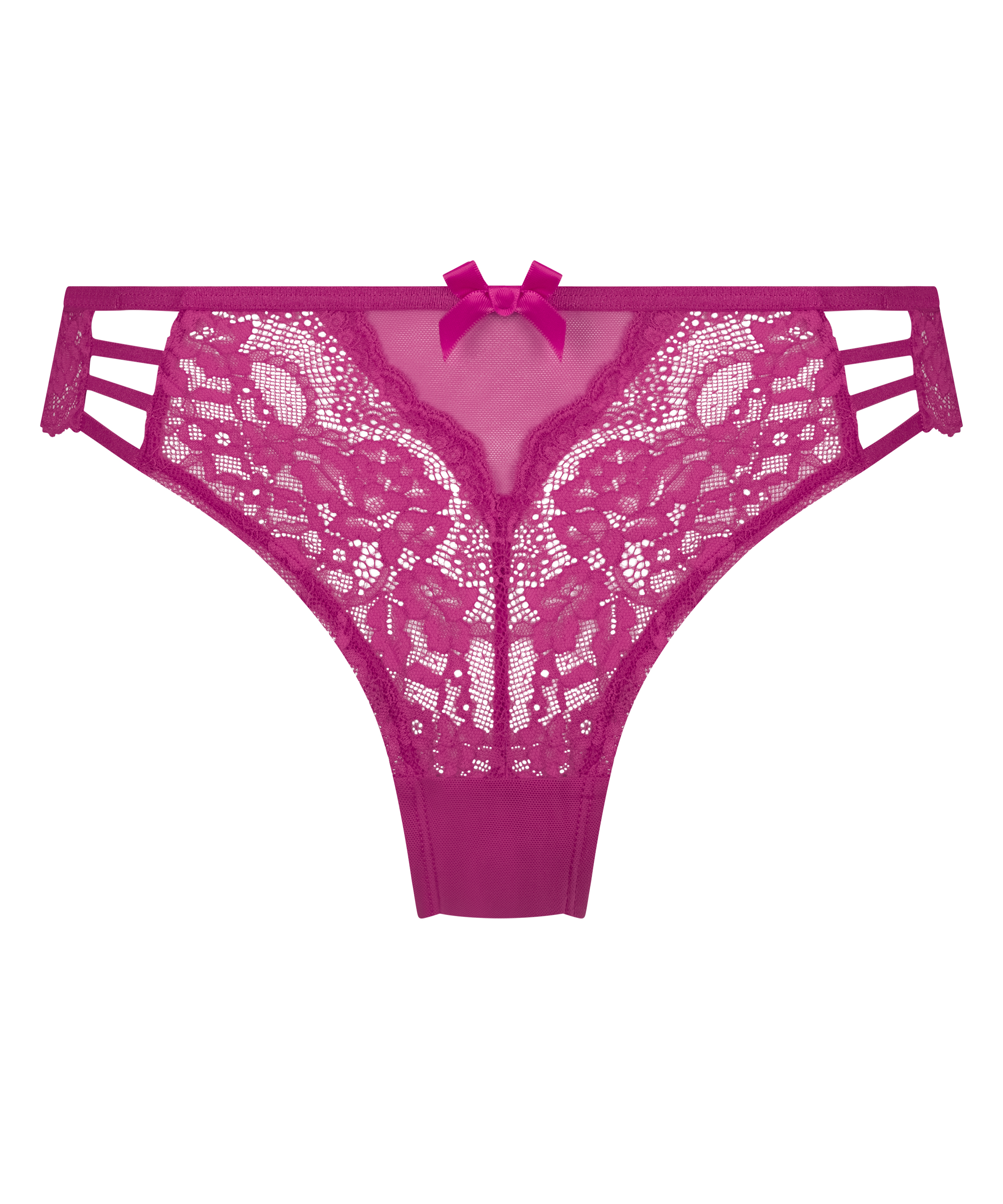 ¡Esta brasileña es lo más! ¡Los detalles de tiras en combinación con el bonito encaje completarán tu look! Combínala con tu sujetador favorito en el mismo color.