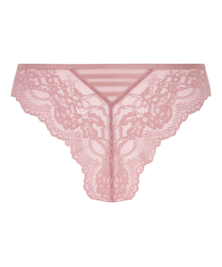 ¡Esta brasileña es lo más! ¡Los detalles de tiras en combinación con el bonito encaje completarán tu look! Combínala con tu sujetador favorito en el mismo color.