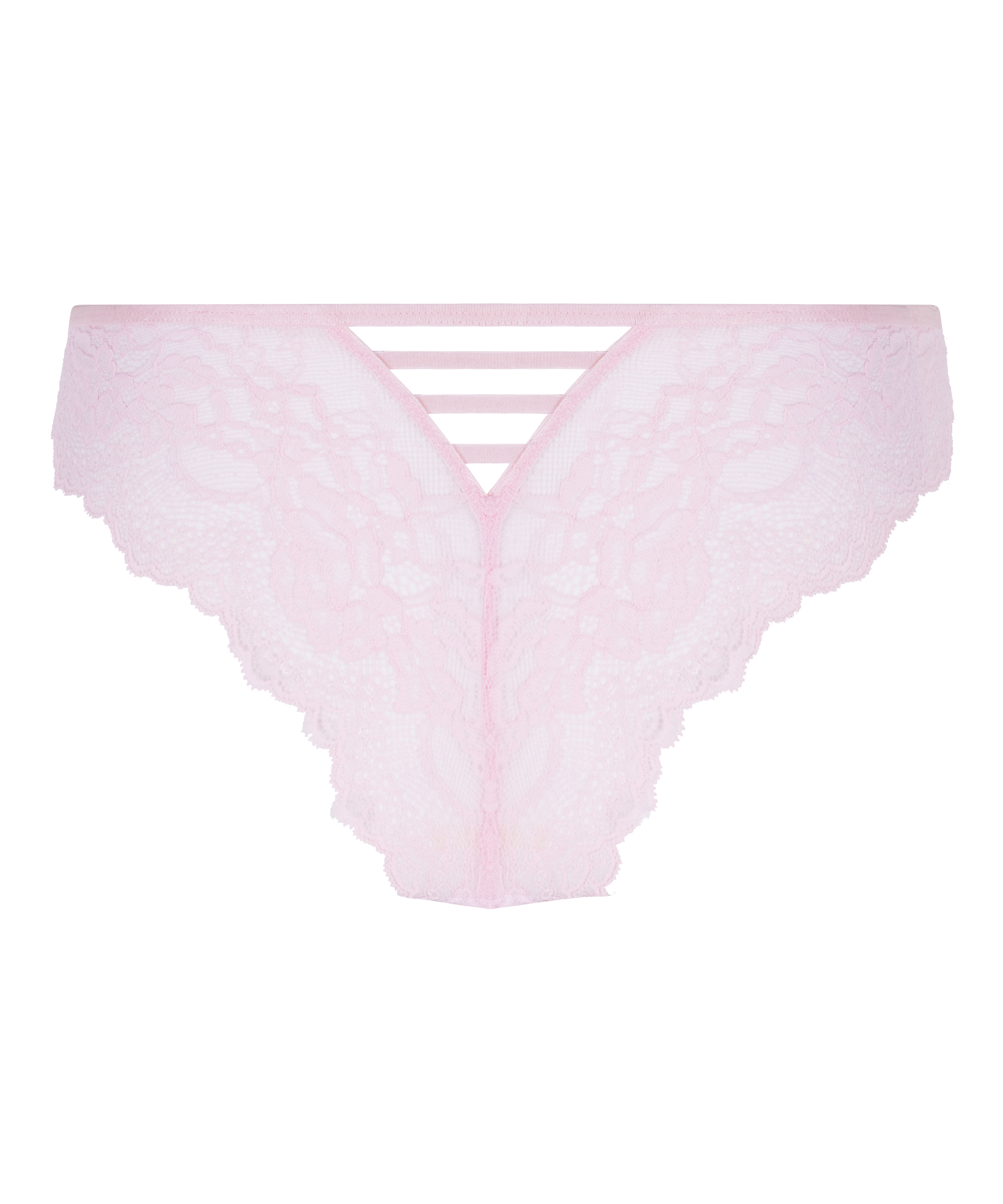 ¡Esta brasileña es lo más! ¡Los detalles de tiras en combinación con el bonito encaje completarán tu look! Combínala con tu sujetador favorito en el mismo color.