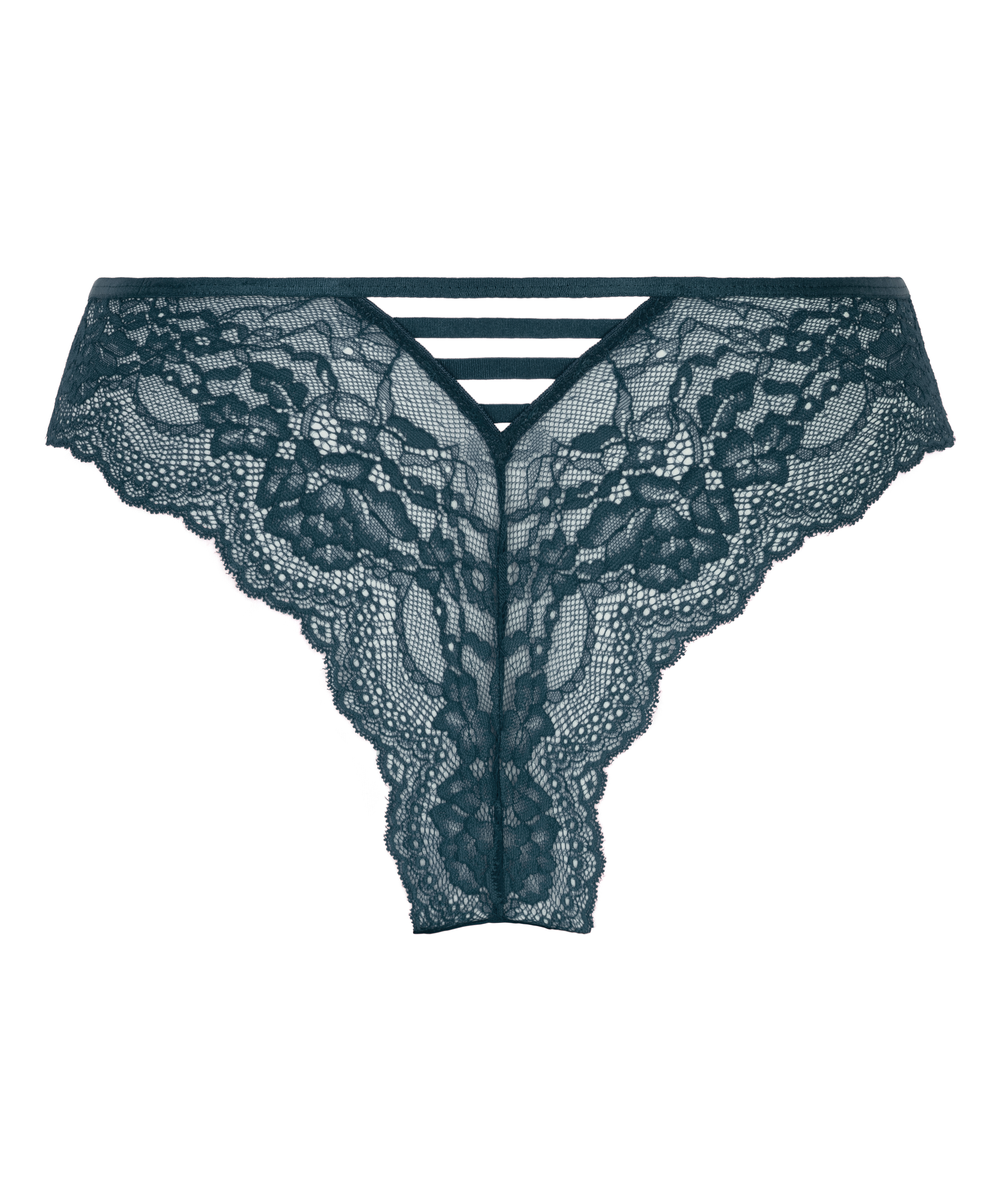 ¡Esta brasileña es lo más! ¡Los detalles de tiras en combinación con el bonito encaje completarán tu look! Combínala con tu sujetador favorito en el mismo color.
