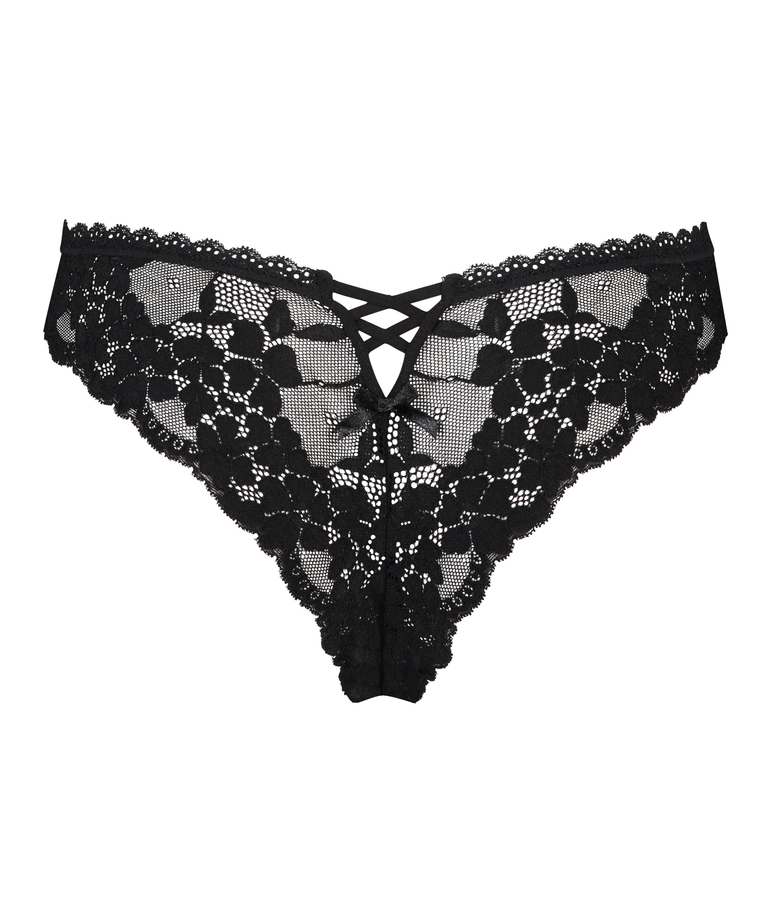 Esta braguita brasileña está hecha integramente de encaje, ¡súper sexi! ¡El detalle acordonado en la parte posterior le da el toque final! ¡Combínala con un bonito bralette de encaje para completar un estilo!