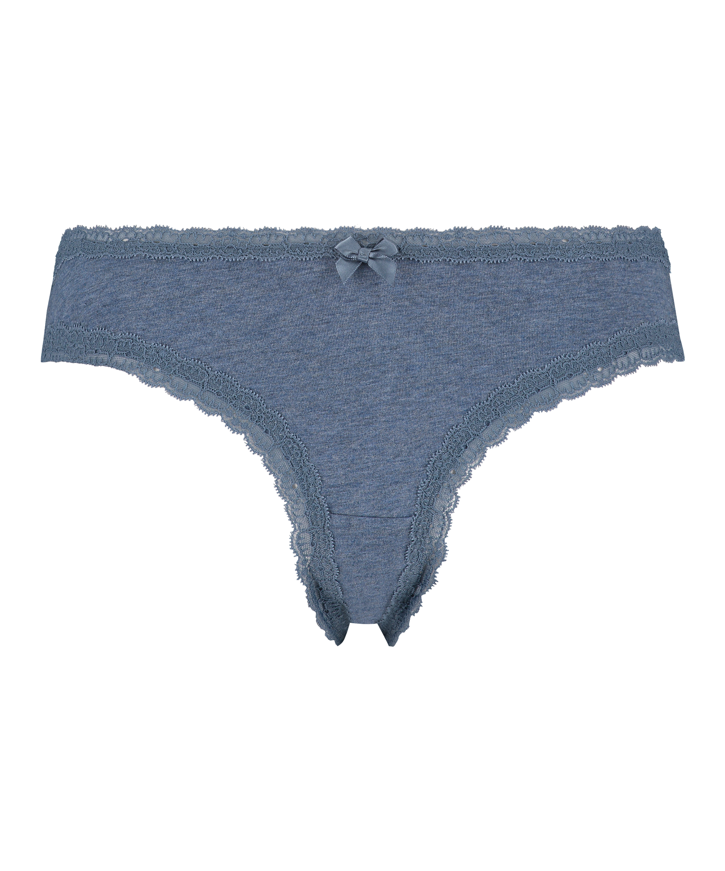 Esta braguita brasileña básica es ideal para su uso diario. Tiene un ribete de encaje y acabado de lacito.