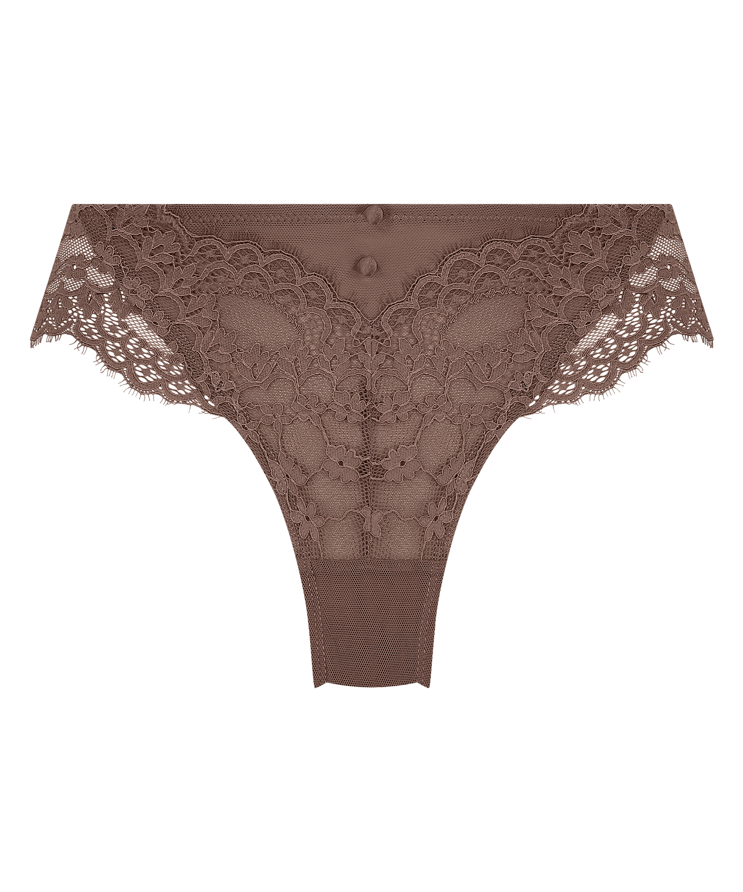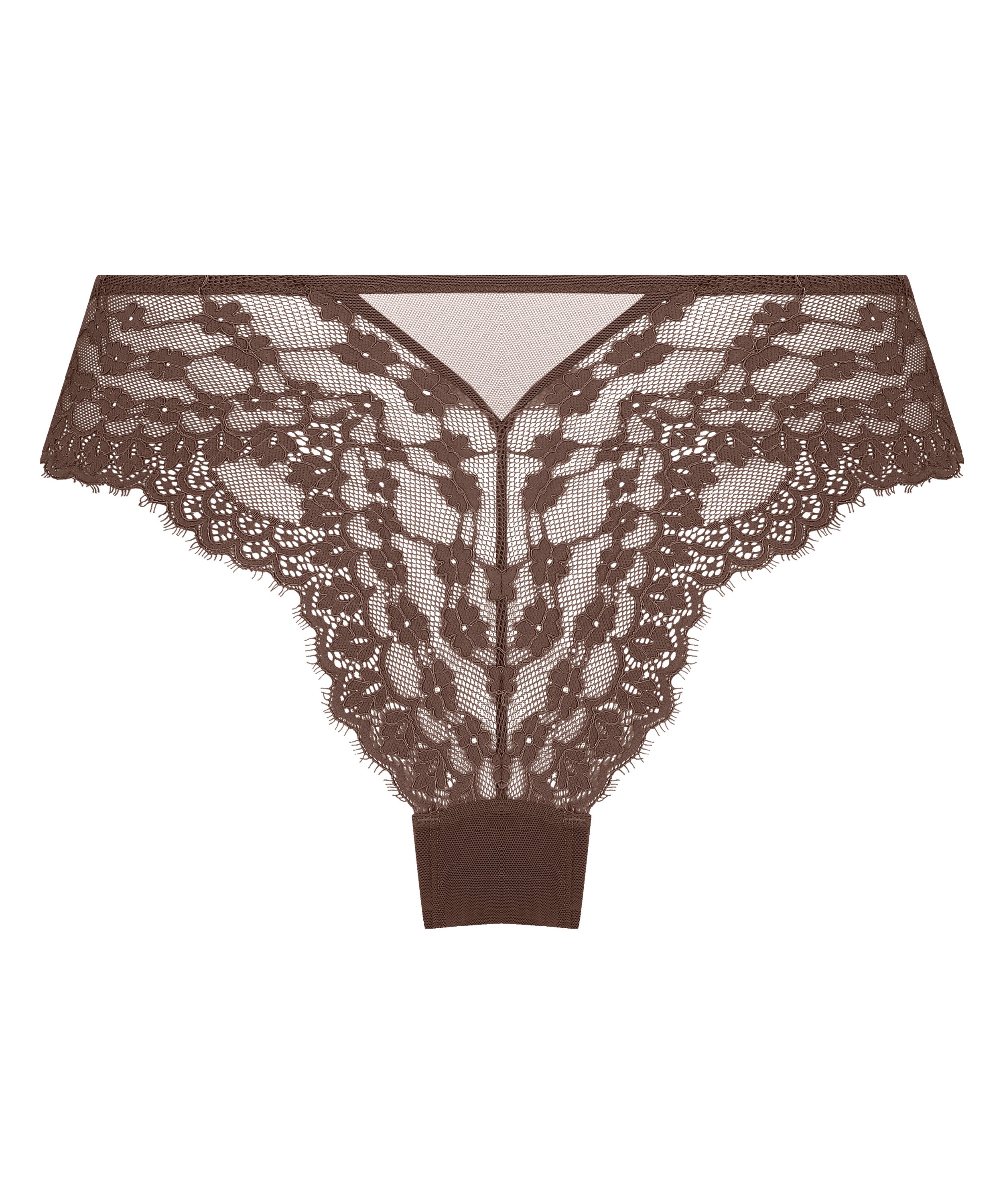 ¡Esta brasileña es lo más! Cuenta con mucho encaje y rejilla en la parte posterior. ¡Combínala con los artículos a juego para completar tu estilo!