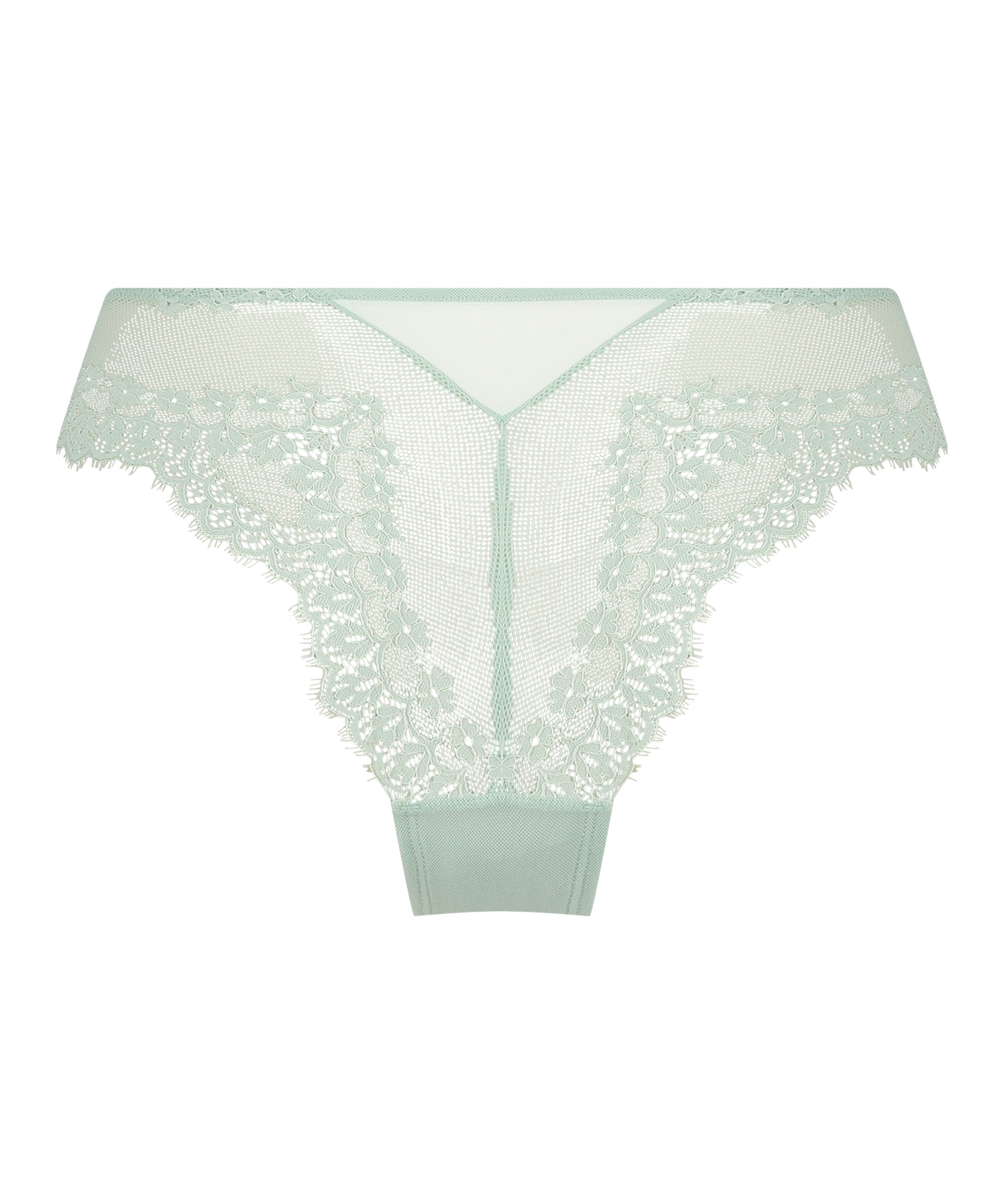 ¡Esta brasileña es lo más! Cuenta con mucho encaje y rejilla en la parte posterior. ¡Combínala con los artículos a juego para completar tu estilo!