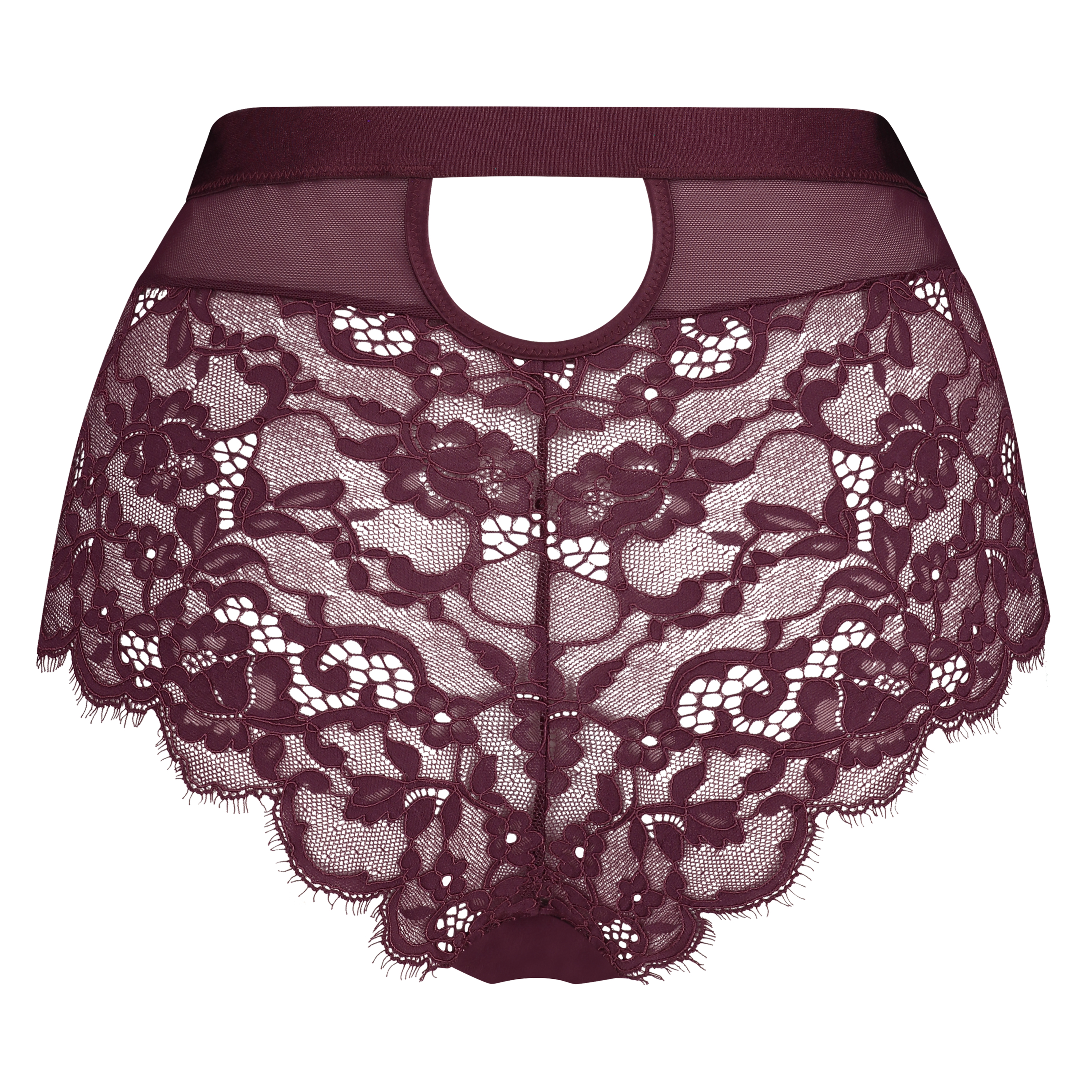Esta braguita brasileña se ha confeccionado con un look and feel satinado y, por si esto fuera poco, se ha acabado con suntuoso encaje. La brasileña es un modelo de corte alto. La parte trasera tiene una abertura que crea un efecto de lo más sensual. Forma parte de la colección Noir.