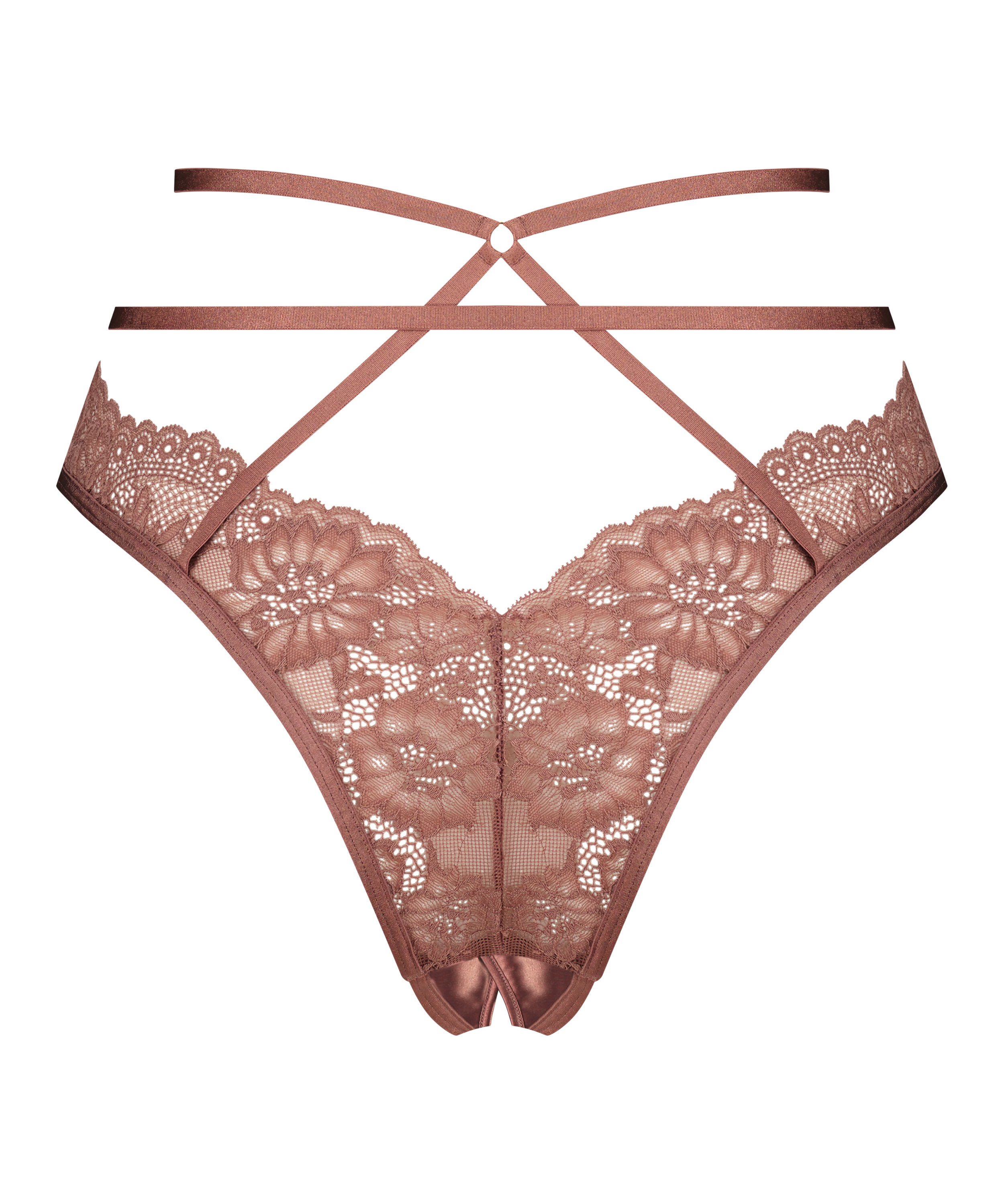 Dale vida a las cosas con esta exclusiva brasileña de entrepierna abierta. Con un aspecto general de encaje en la parte delantera y en la trasera, con muchos detalles de tiras y recortes para lograr la máxima sensualidad. La entrepierna abierta añade un nivel extra de picardía. ¡Completa el conjunto con el sujetador a juego!