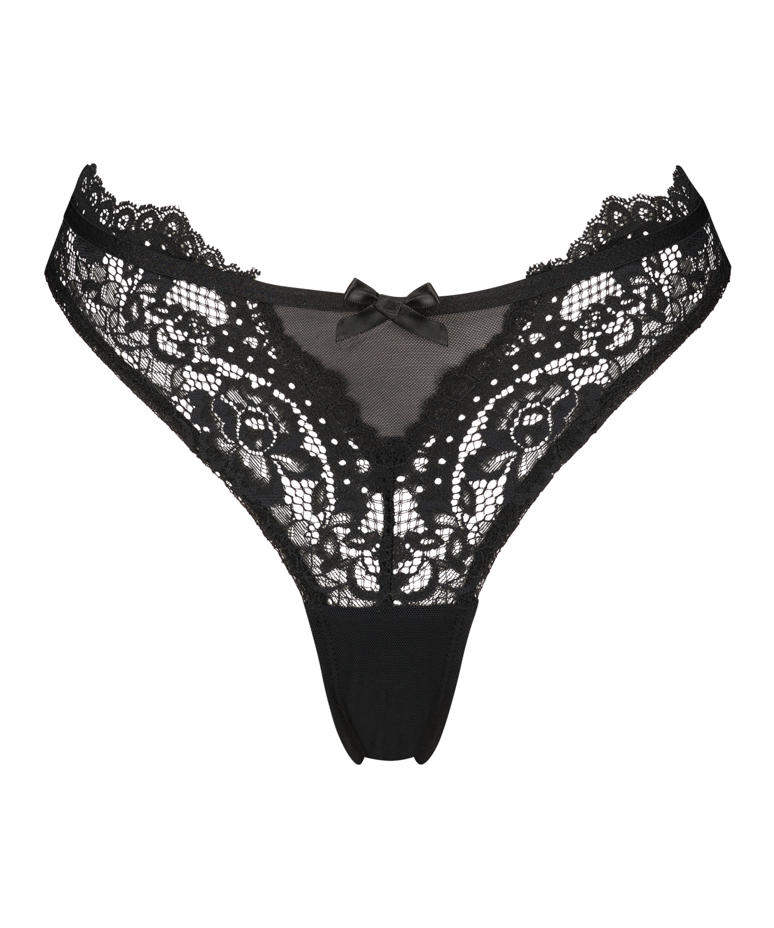 ¡Luce tipazo con esta braguita brasileña! La braguita brasileña es de tiro alto y cuenta con bonitos y suntuosos detalles de encaje y rejilla.¡El lacito en la parte delantera la completan a la perfección!